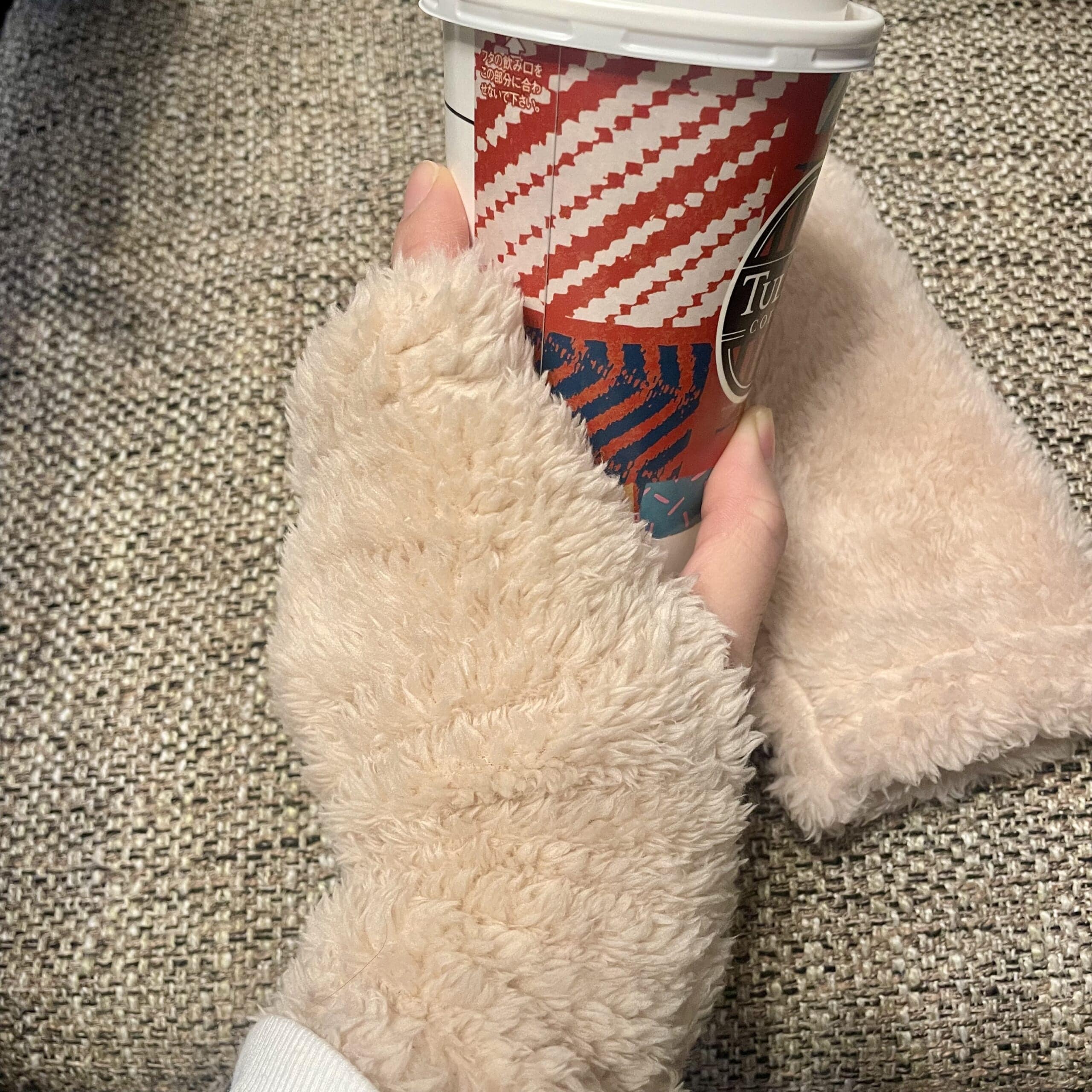 指先は出ていますが、手首〜手の甲はボアに包まれていて思ったより暖かいです。