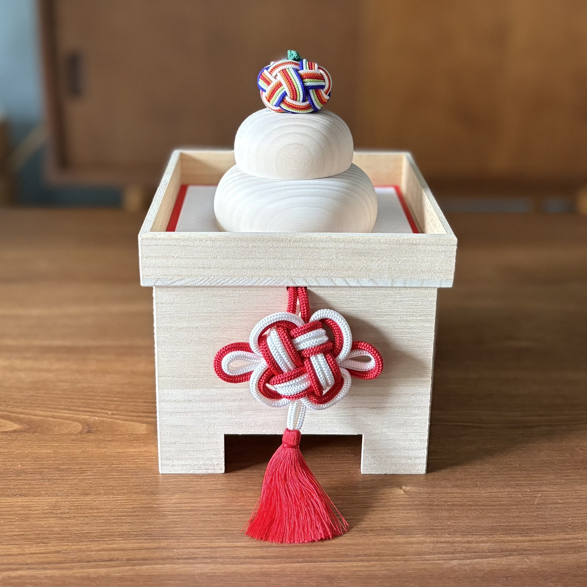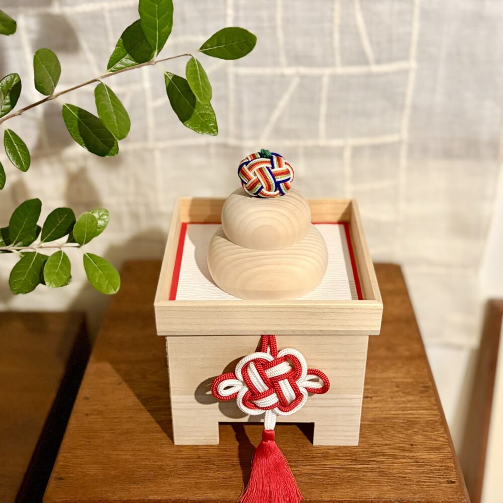 滑らかな木製のお餅と、正絹の組紐で丁寧に編まれた飾りが、晴れやかな新年にぴったり。