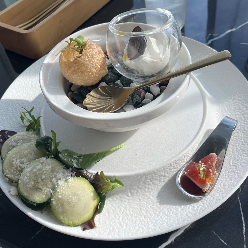 ランチコースをお酒と一緒にゆっくり堪能し、贅沢なひとときを過ごしました。