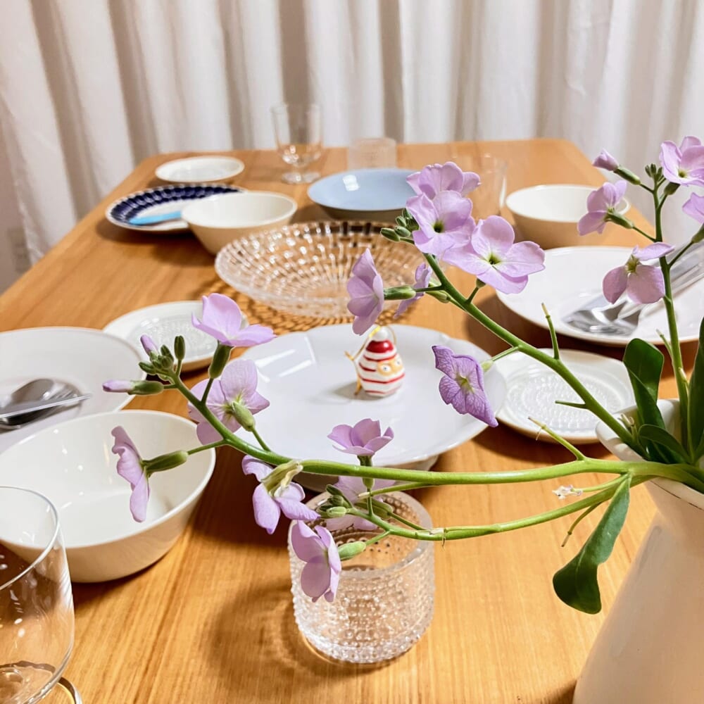 あらかじめ、お皿だけ並べてこんな感じ?とイメージ。基本的にお皿の変動もほぼないので、白×青×ガラスのパターンです。それが一番好きな組み合わせ。