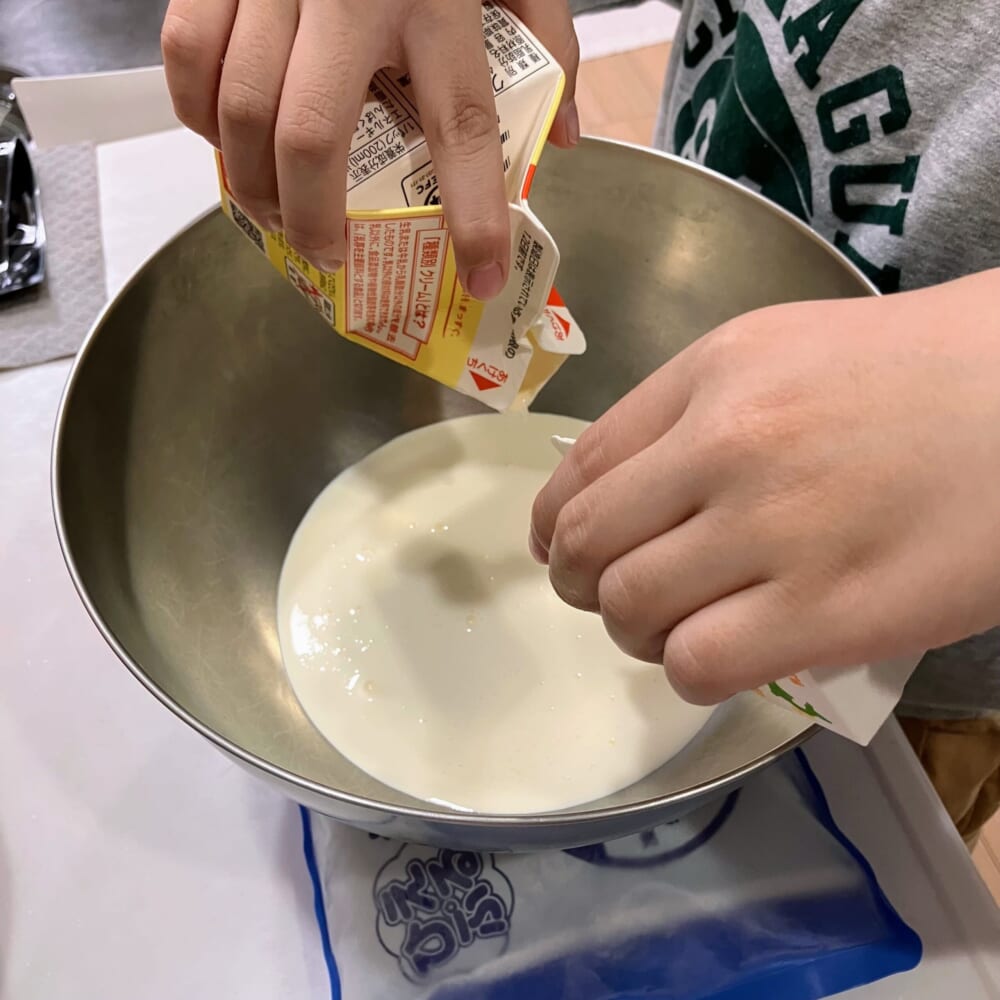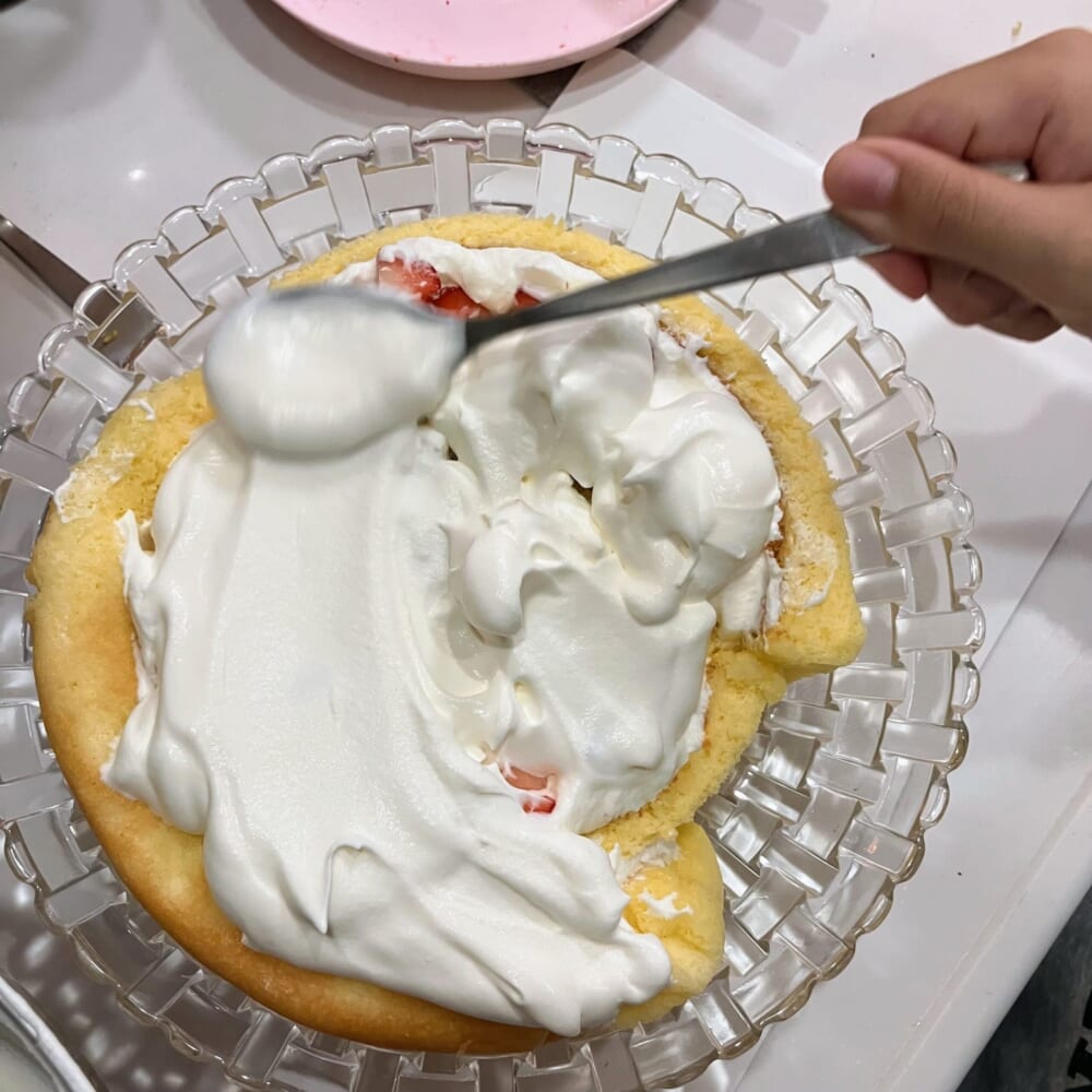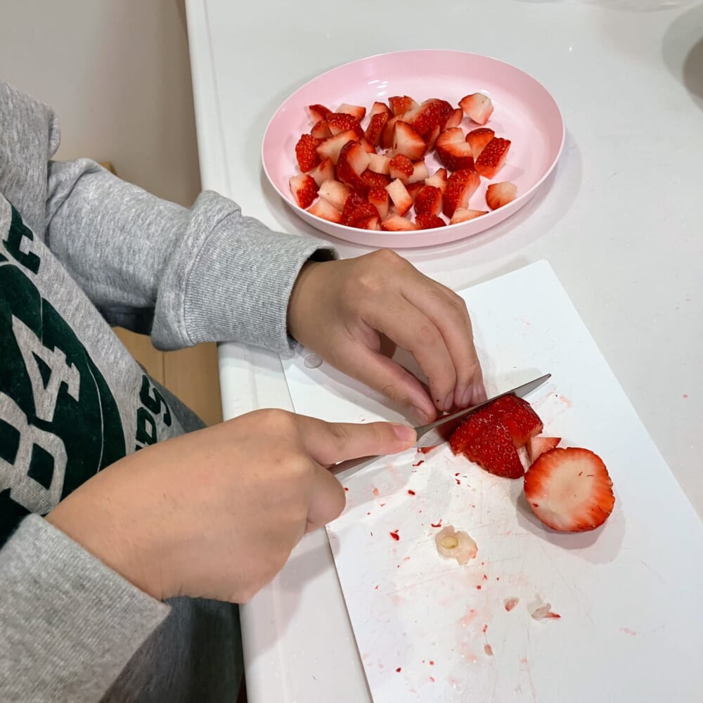 いちごを切って、近藤さんレシピの「絶品生クリーム」を。