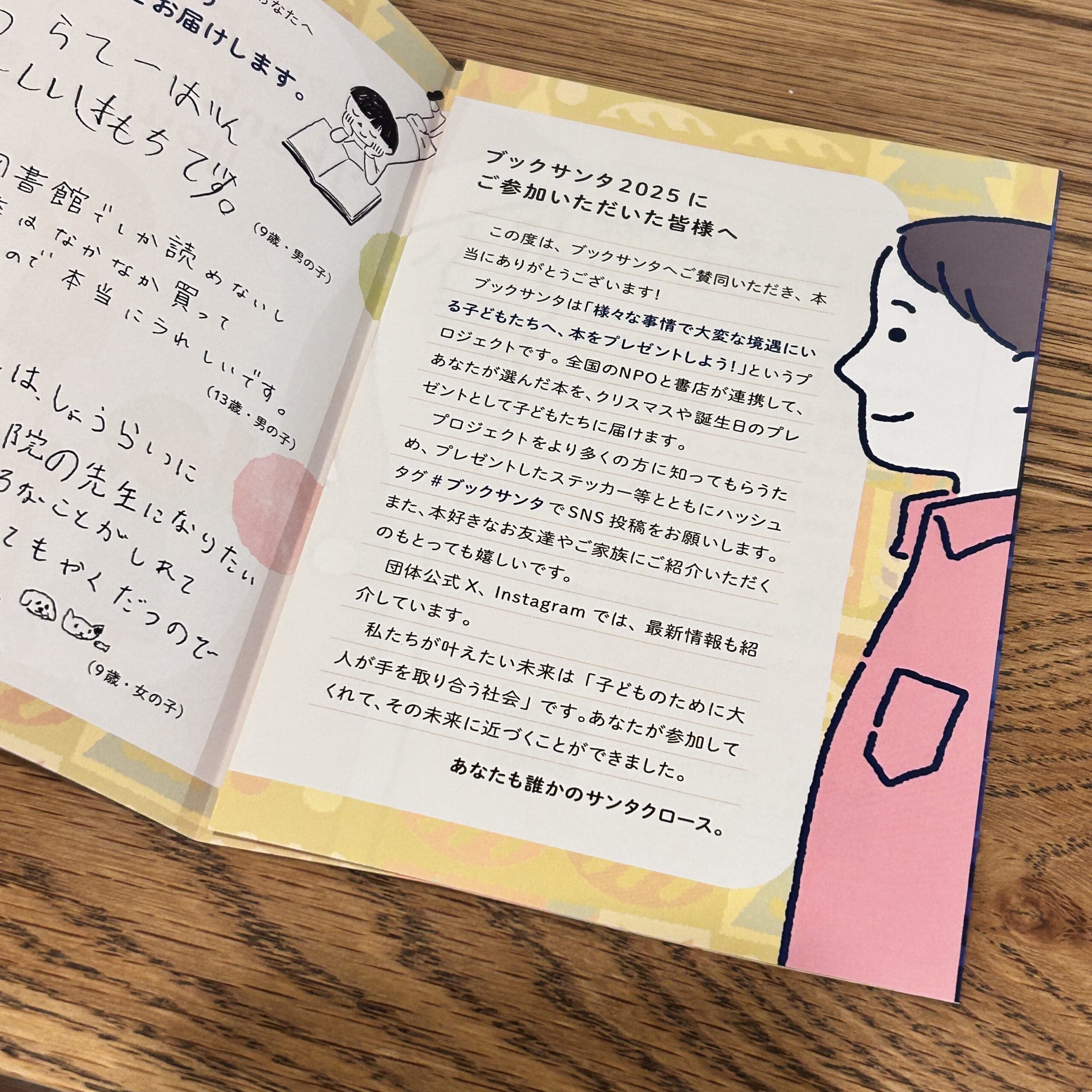 トトちゃんのクリップでブックサンタという活動を知り、私も昨年から参加しています。