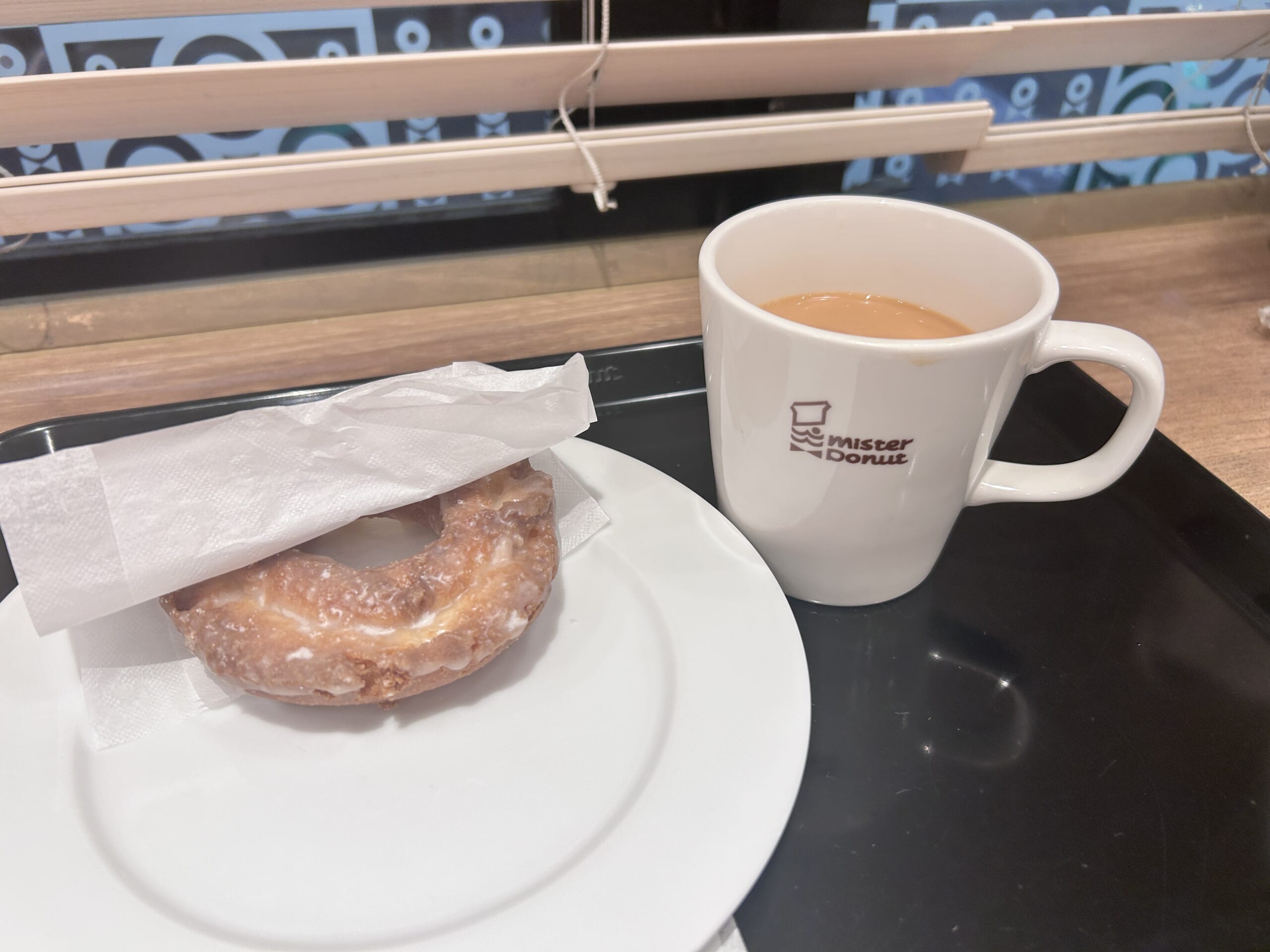ミスドを発見し、カウンター席に横並びで続きのおしゃべりを。