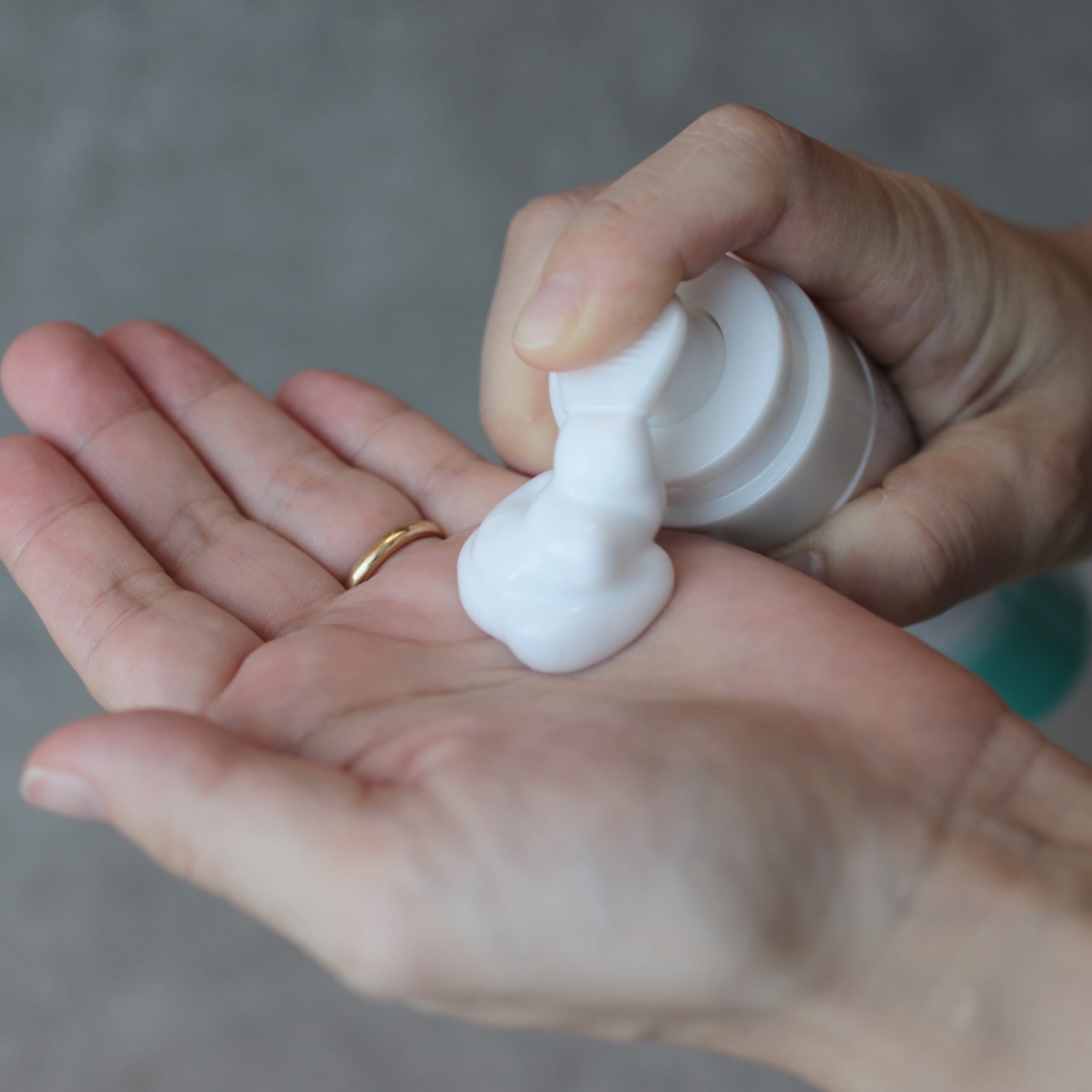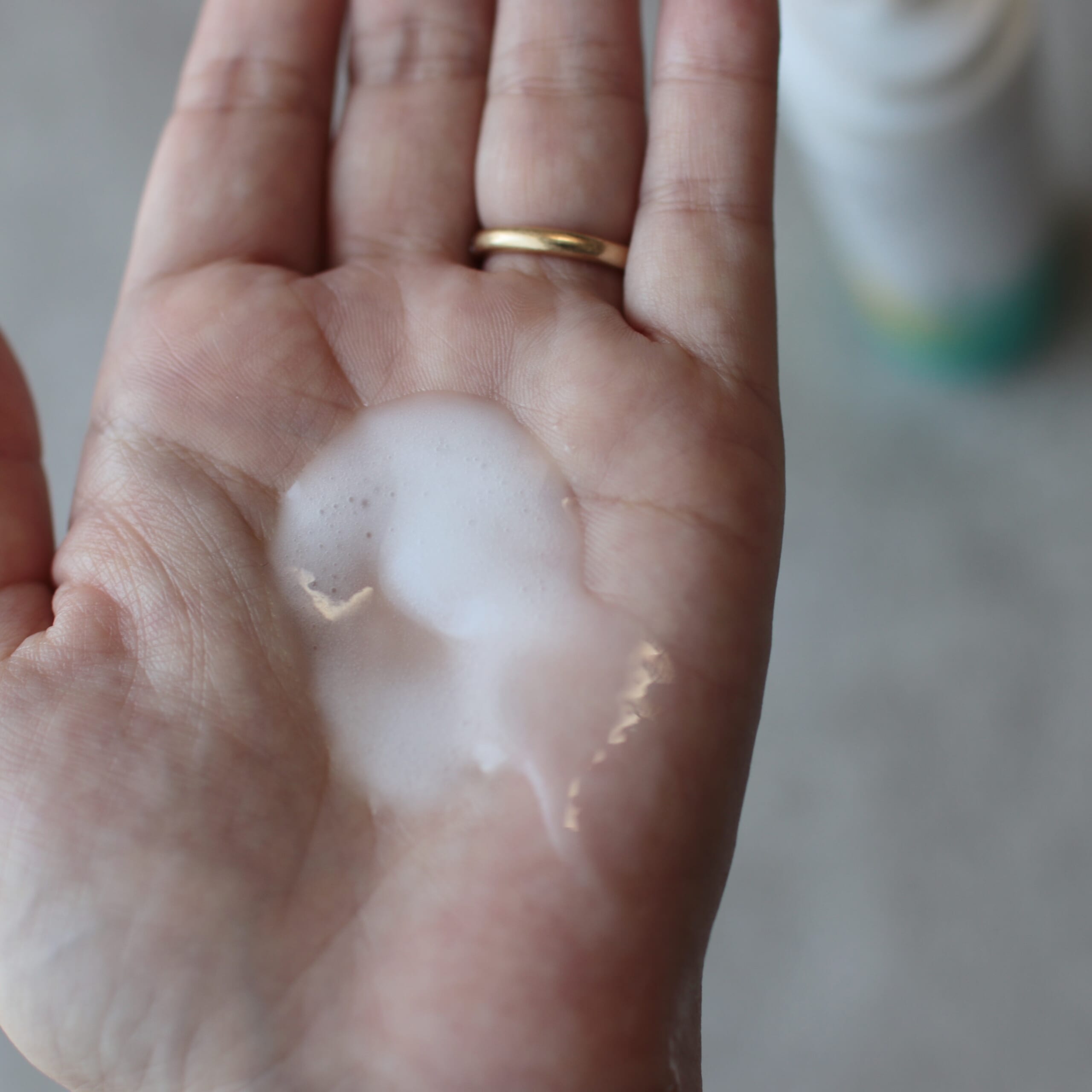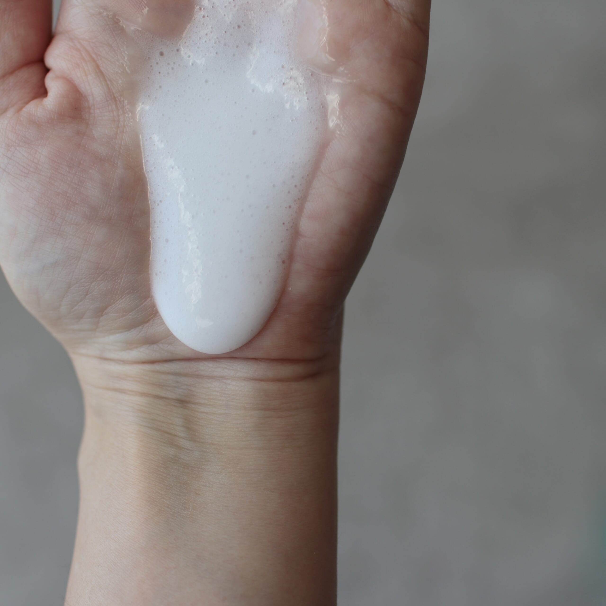 肌にのせると液体のように変化し、スッとなじんでいくような、軽やかなもちっと泡です。