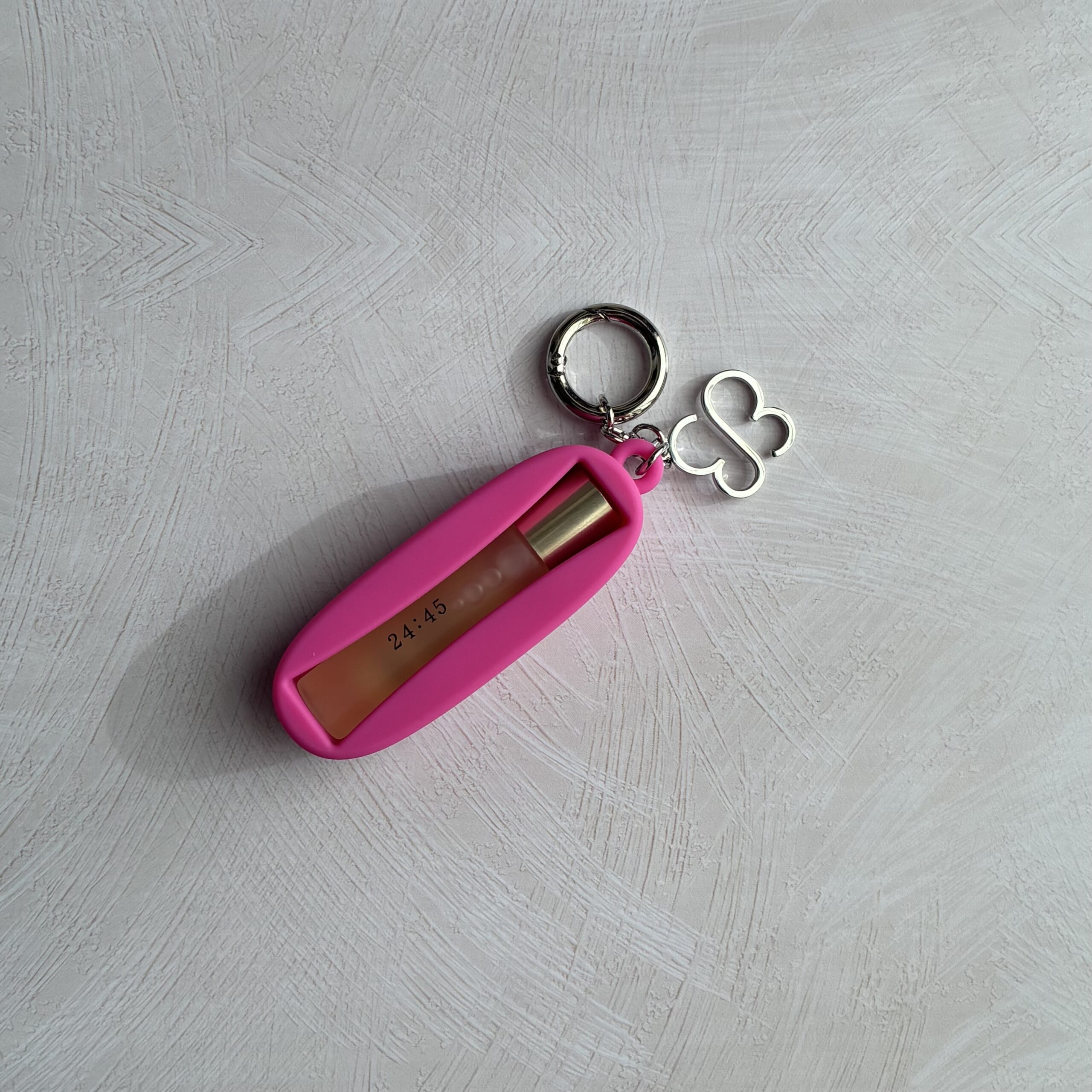 このホルダーにオイルをカポッとはめられて、カバンなどに付けるとパパッと取り出せて便利です。