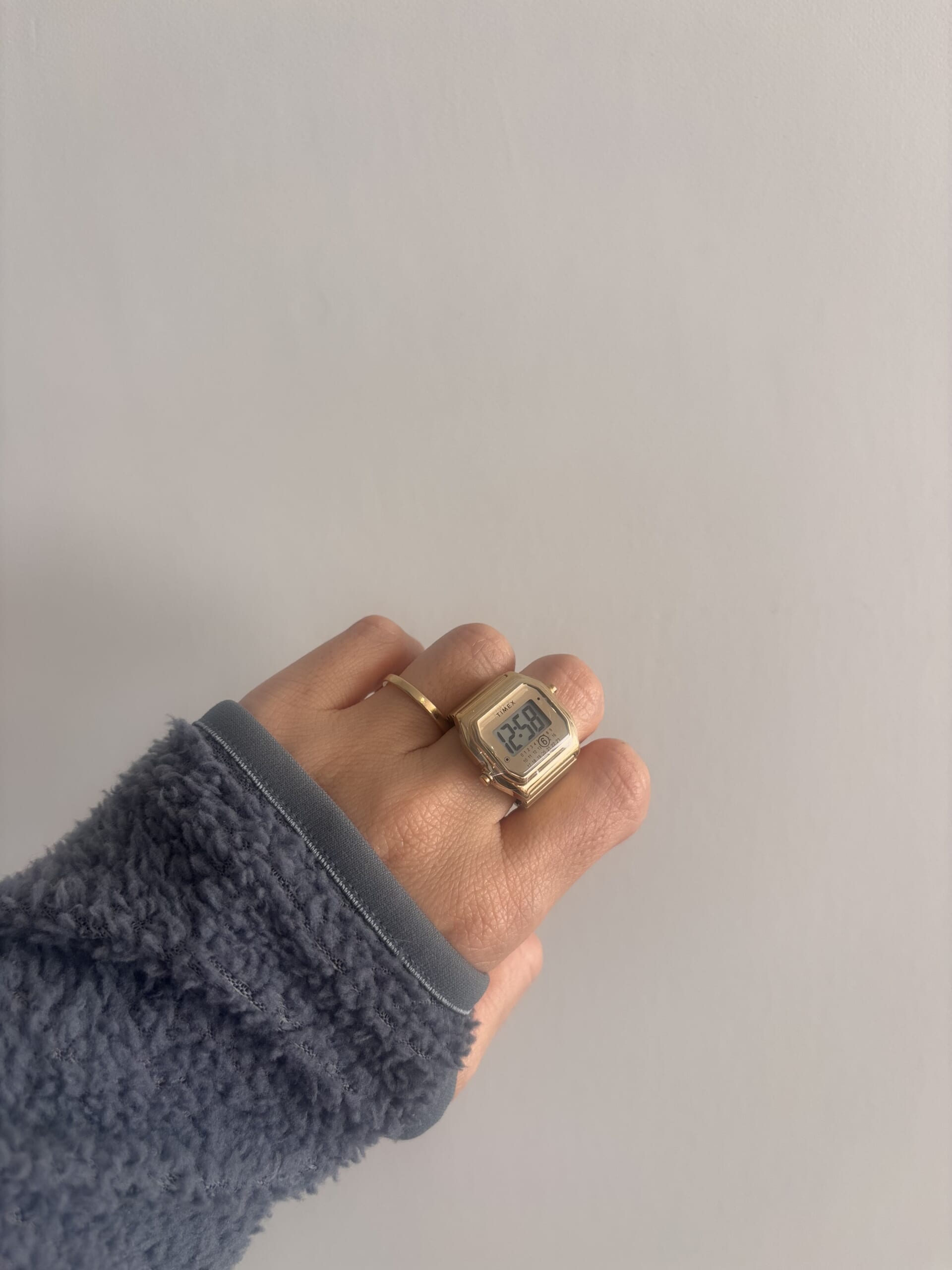 「自分頑張った」の気持ちをこめて今年は何か買おうと色々探す中、ふと思い出した去年シルバータイプで見かけたMM6のコラボリングウォッチ。調べた時にはもう既に完売になっていて、この1年ずっとあのリング可愛かったなと心のどこかに残っていました。そして今年もゴールドタイプを販売すると知り、これは買うしかないと思い販売日を待ってインターネットでポチッと購入いたしました。
