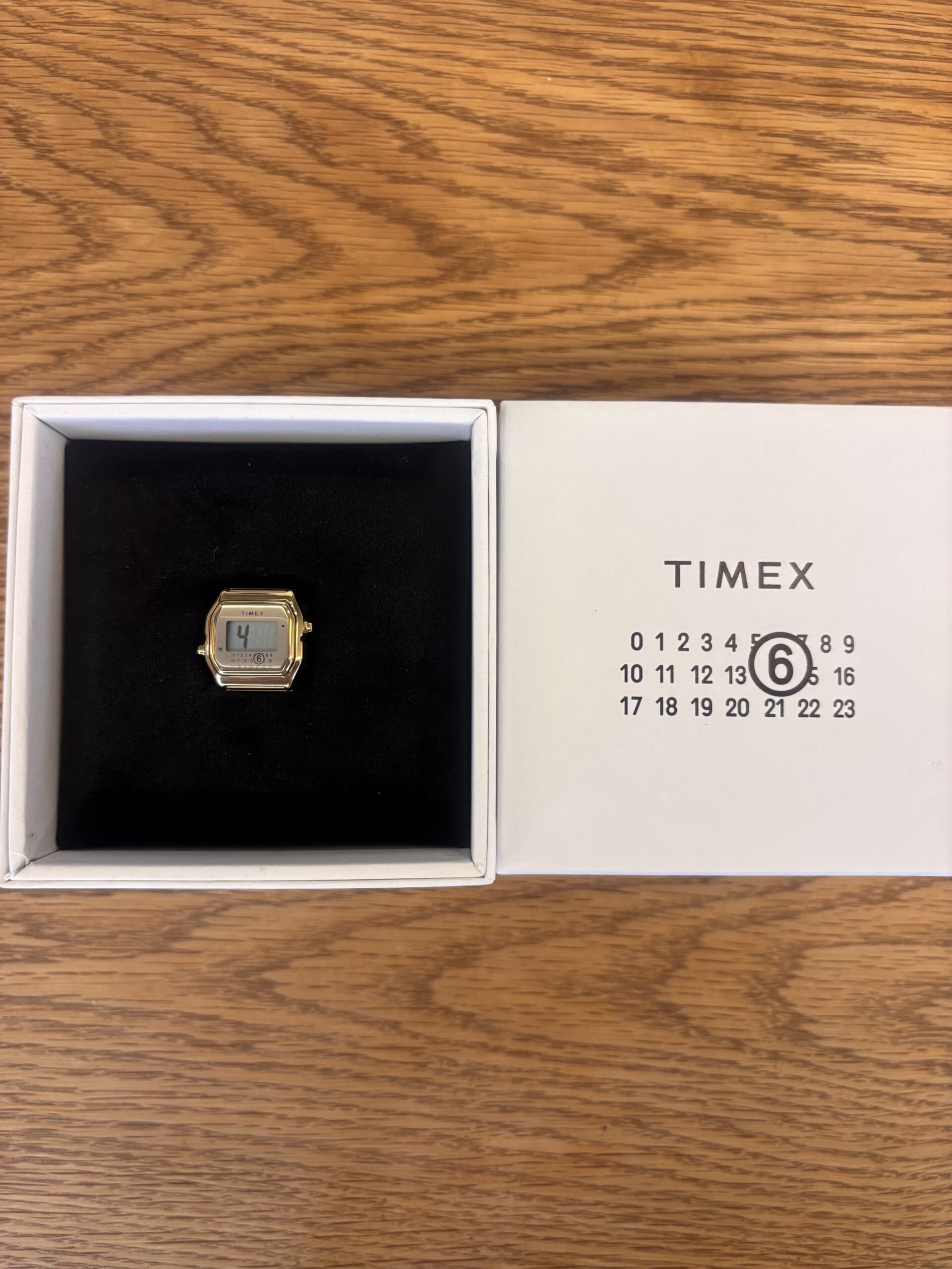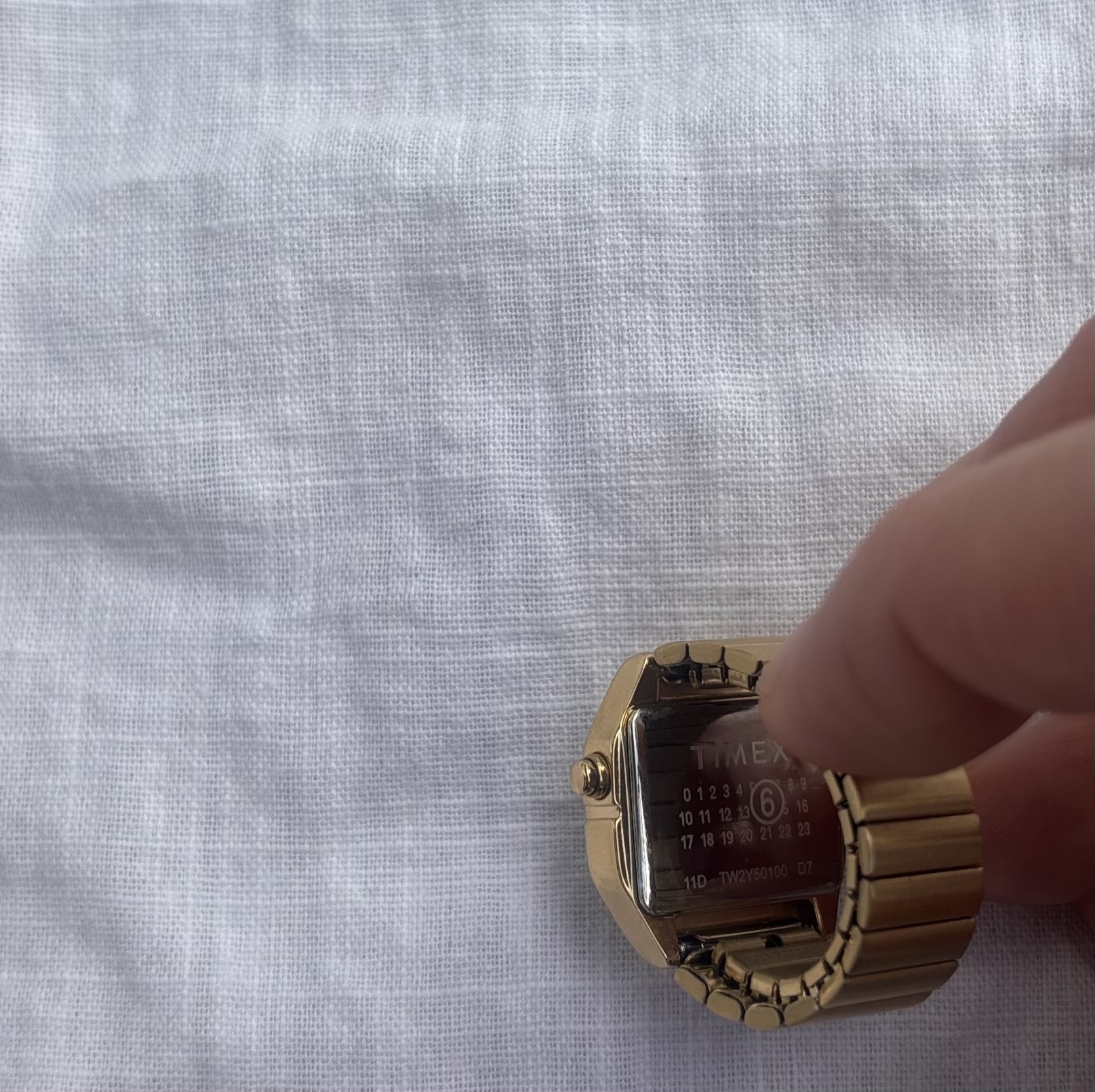 こうしてみると本物の時計の様。裏部分もよく見るとMM6×TIMEXの文字が。