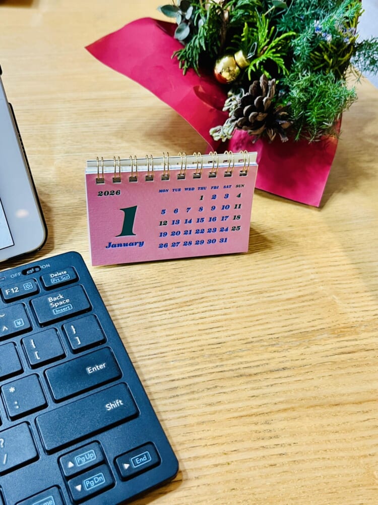 私は職場のデスクに置いておき、ふとした時にささっと日付を確認するのに便利で気に入っています!