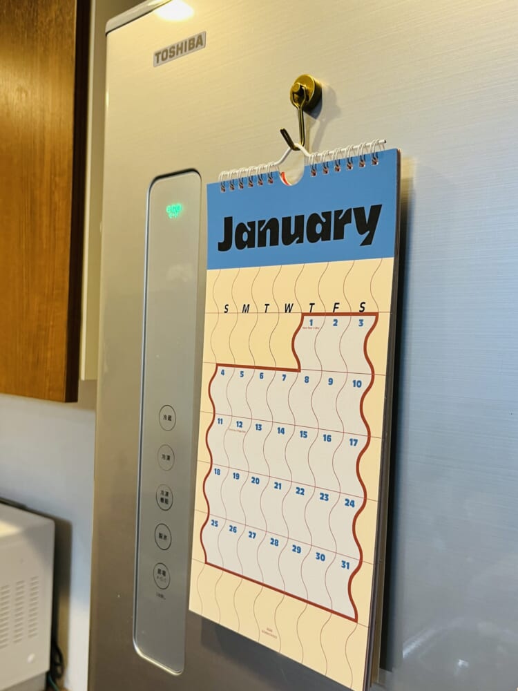 スッキリとしている日付部分の余白は家族分の予定も書ける余裕があり、家族みんなの共通予定表として活用できるのが良いところ!華やかだけど落ち着いた印象で、寝室に飾るのも似合いますね。(結論、どこでも愛用できること間違いなし!)