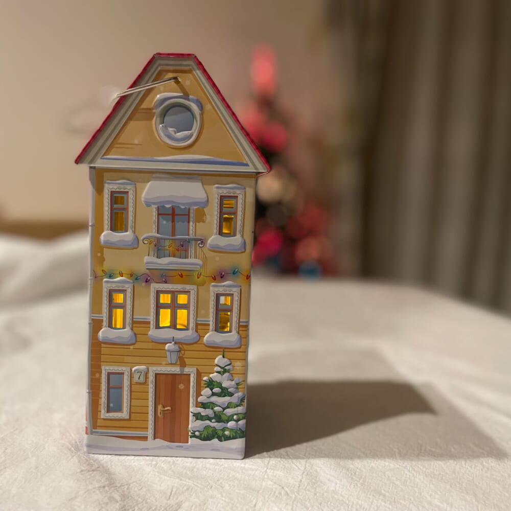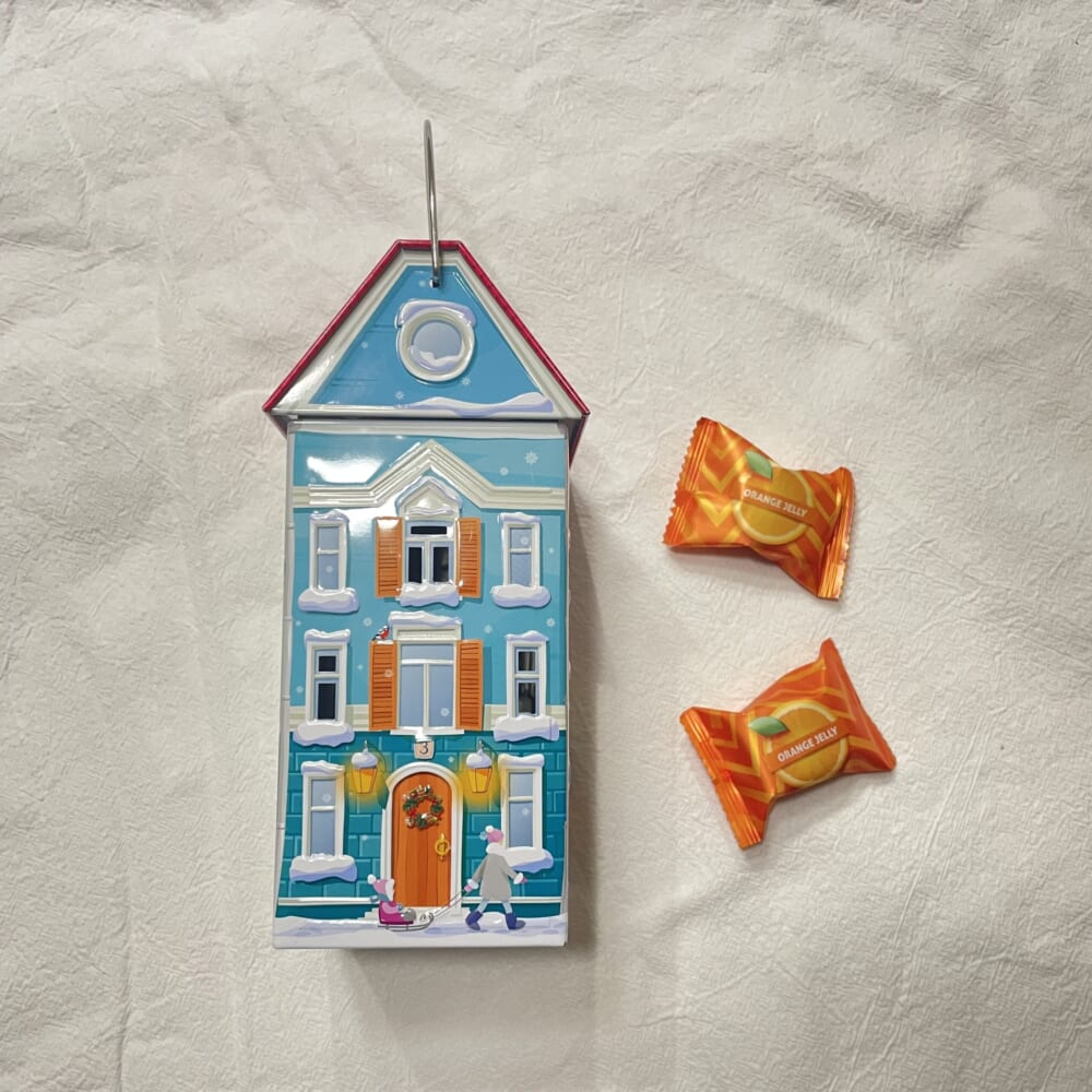 今年、新潟にいるおばさまからいただきました。お家の形の大変可愛い缶!!壁の四面が違う色になっているので、模様替えも楽しめます。
