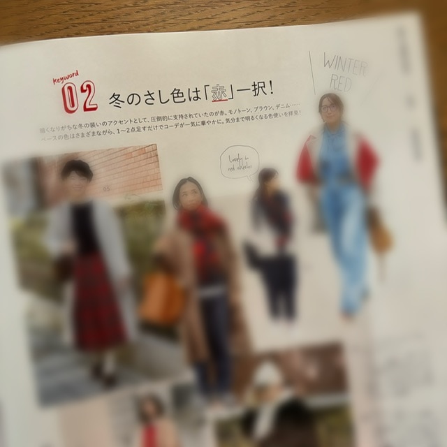 過去にLEEで特集されていても「地味色好きだから赤には挑戦できないわ~」と敬遠していましたが、試しに赤い小物を取り入れてみると暗くなりがちな秋冬のお洋服が一新。