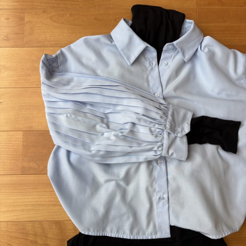 濃いブルー×ブラウンもかわいいですが、今回は2色のブラウンの存在感を強めたかったので、水色に近い色のシャツを選びました。