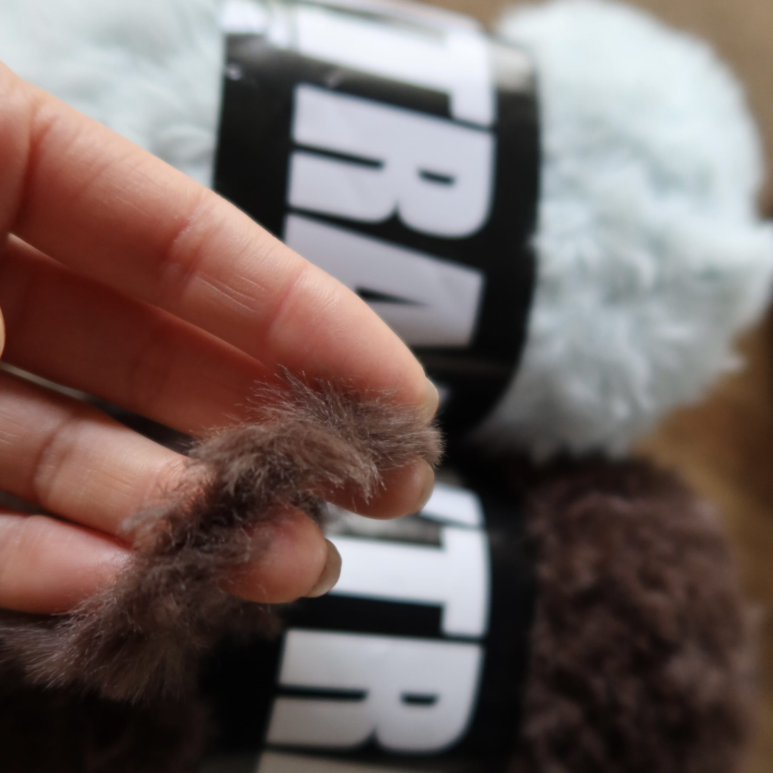 ファーになっている毛糸は初めまして、作品になったときにどんな感じになるか楽しみです。