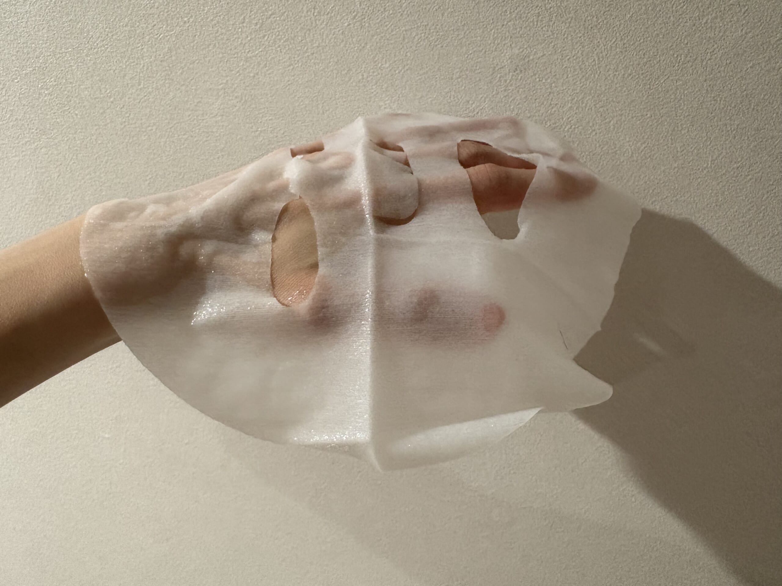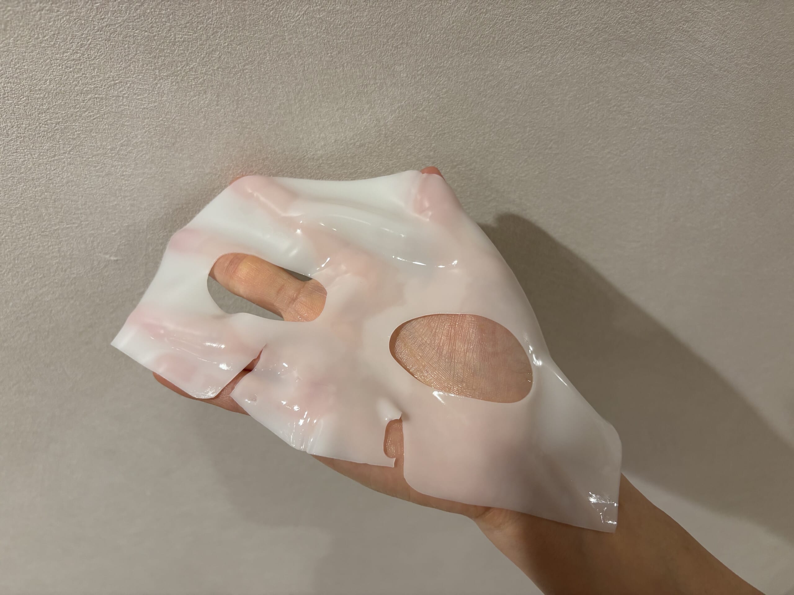 触った感じは、”杏仁豆腐””みたいなプルプルシートで、起きるとパックの色が白が透明になっています。