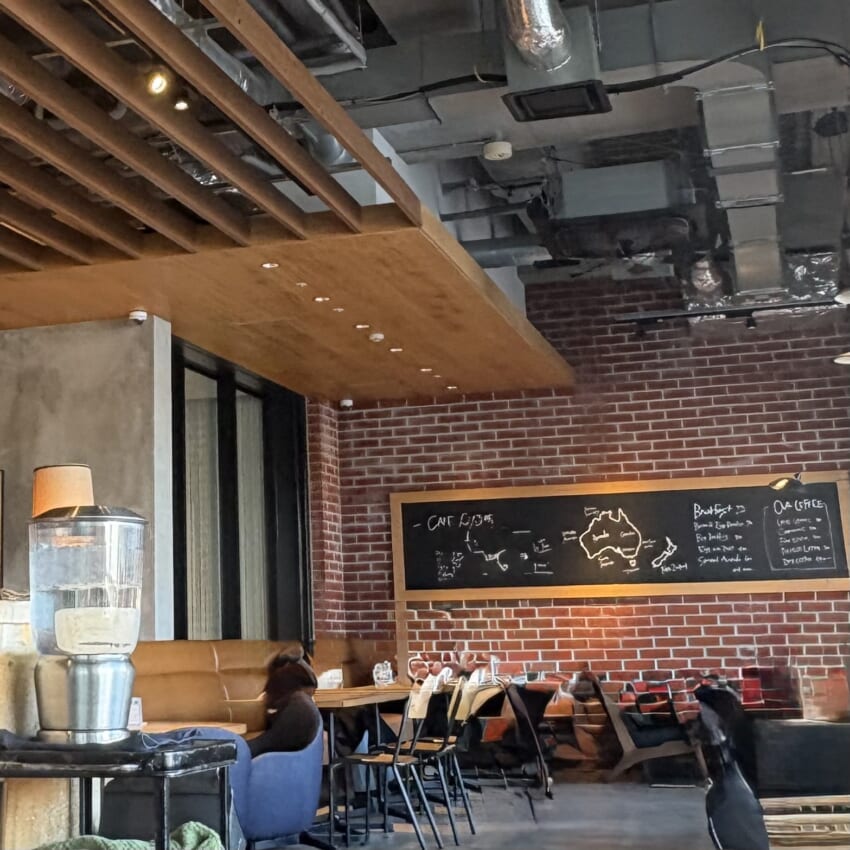 レンガ調の壁や配管むき出しの天井の「海外っぽい少し無骨な雰囲」と、大きな窓から差し込む太陽の光が調和し、スタイリッシュでありながら落ち着ける空間が広がっています。朝から豊富なメニューのモーニングが揃っている「LATTE GRAPHIC」は、ゆっくりモーニングをいただきたい時に最適のお店です♪