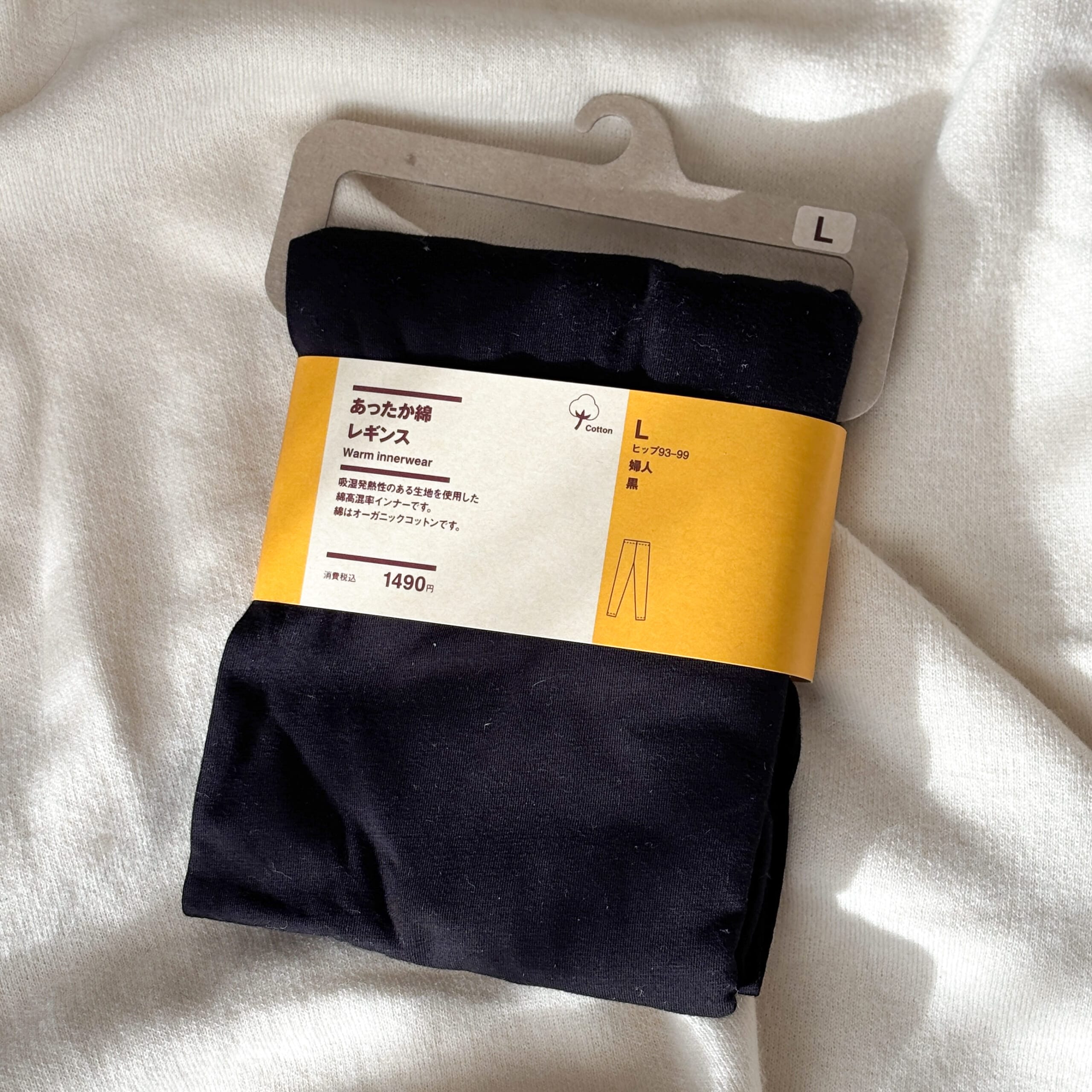 もうちょっとお手軽に買えるものはないかと探して、無印良品で綿のレギンスを見つけました。組成は綿94%ポリウレタン6%なので、ほぼ綿です。