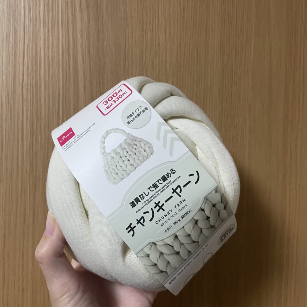 初秋にダイソーで買ったチャンキーヤーン。1玉330円。こちらです。