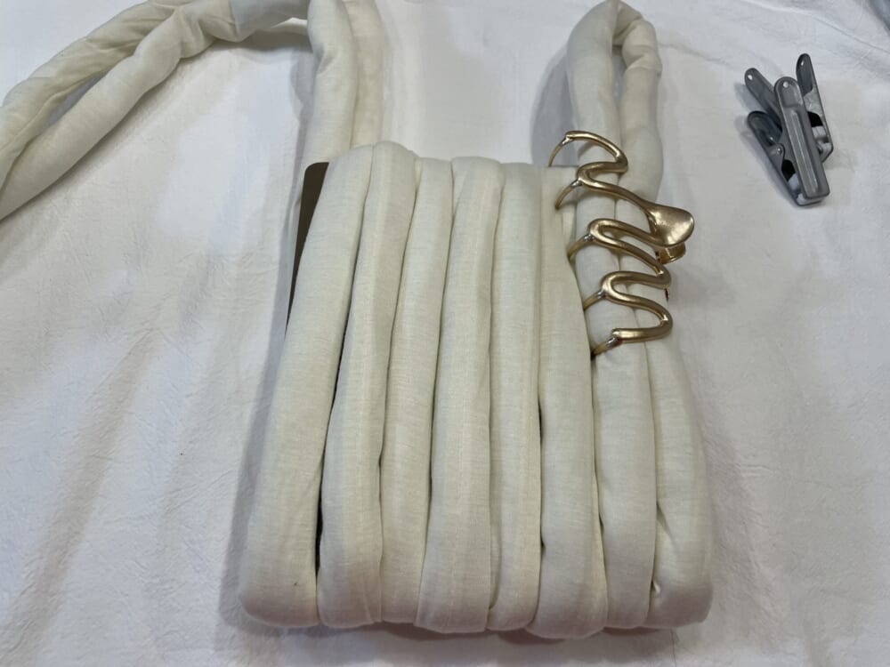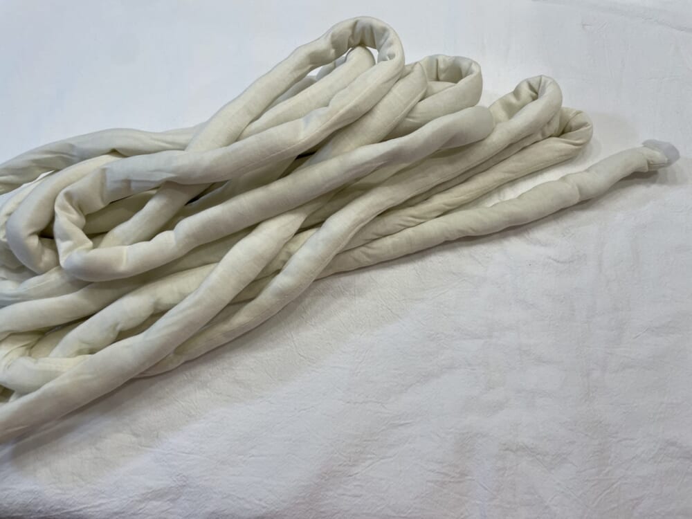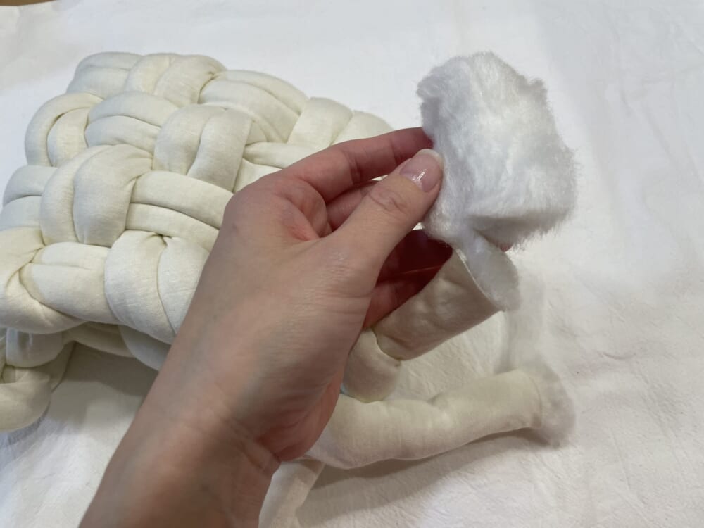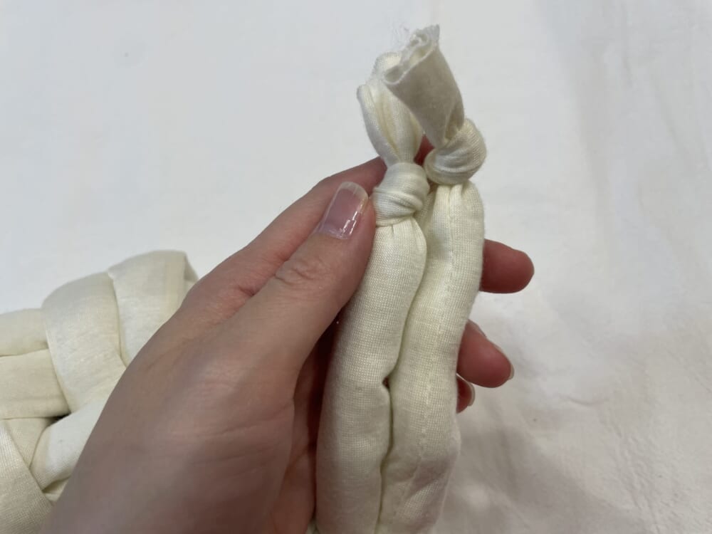 綿を抜いた部分を結んで、綿が出ないよう端の処理が完了しました。
