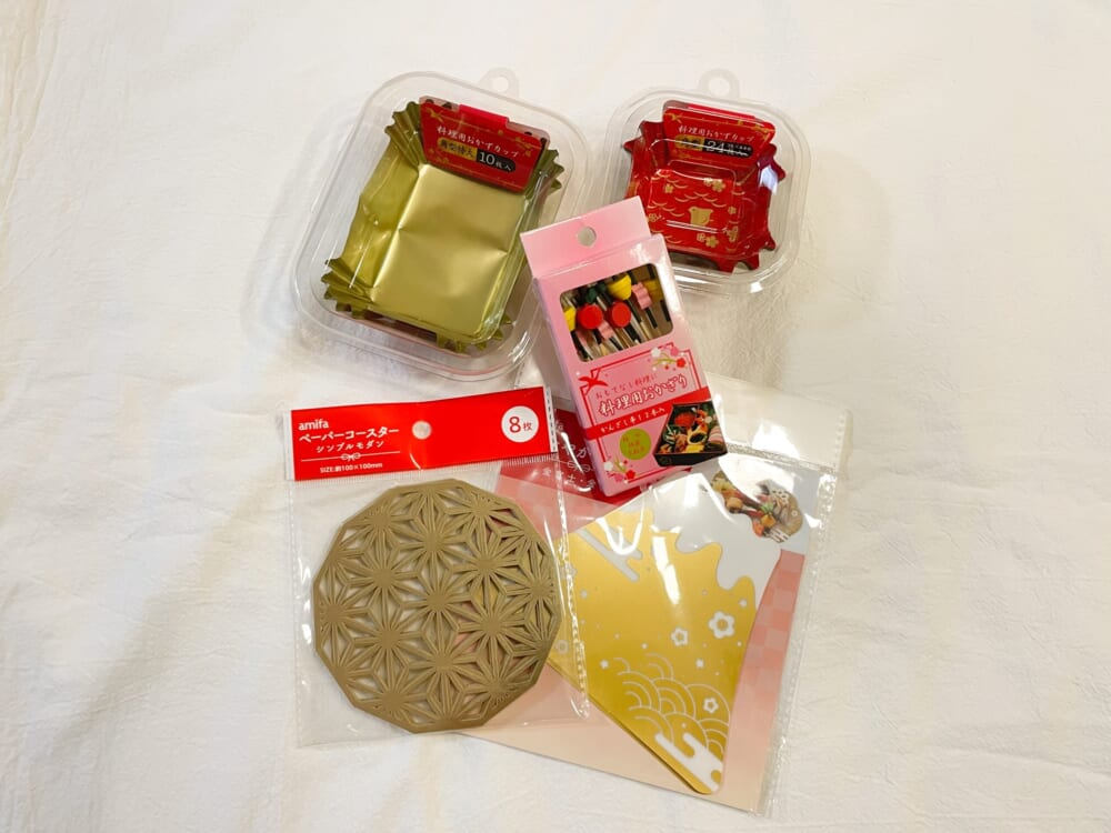 お店に入るとクリスマスのオーナメントや紙皿等々、その横や後ろの棚をみるとお正月関連グッズと、こちらがぼんやりしている間に季節の移ろいを教えてくれるのが100円均一ですよねぇ笑。