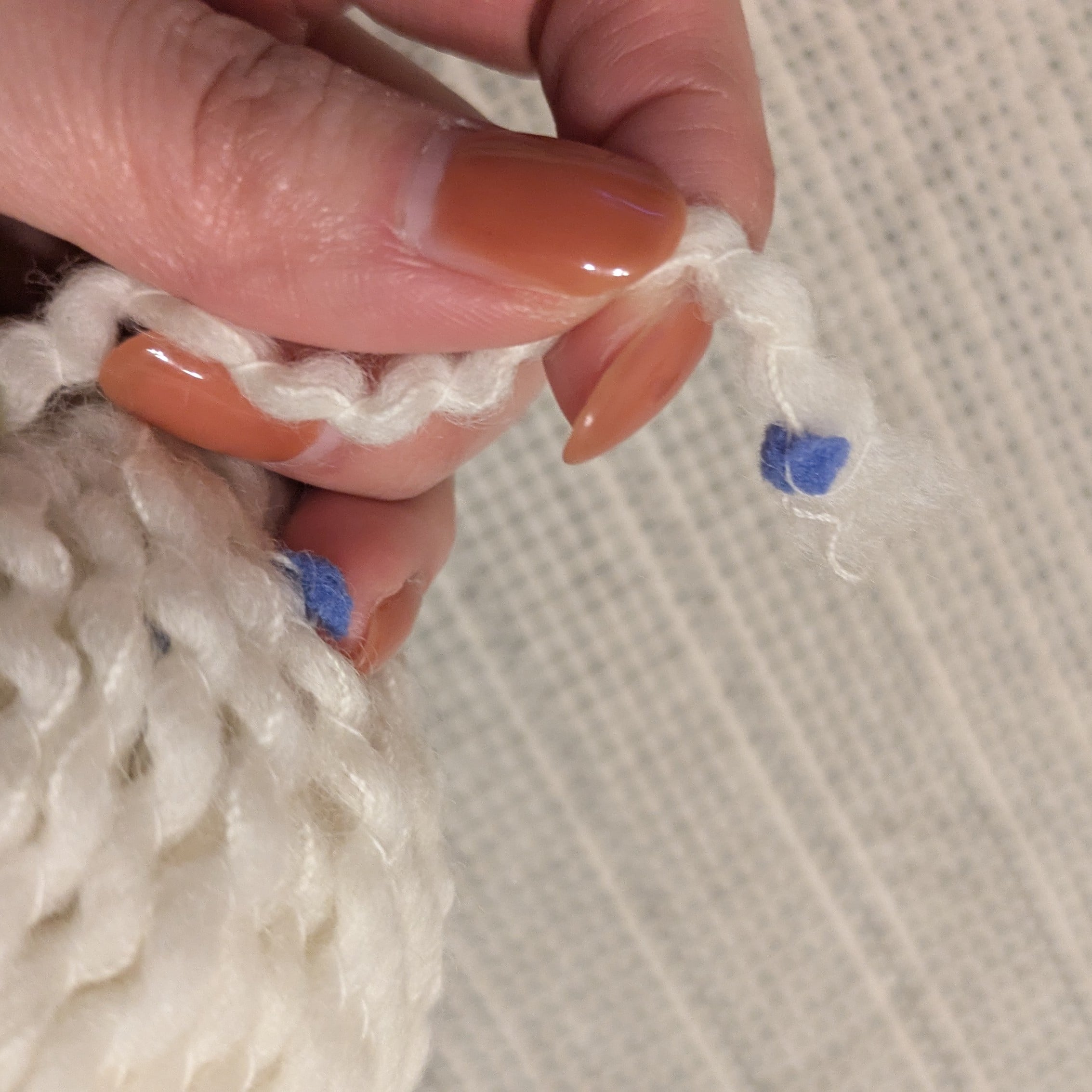 私が選んだのは、オフホワイトに鮮やかなブルーのポンポン。