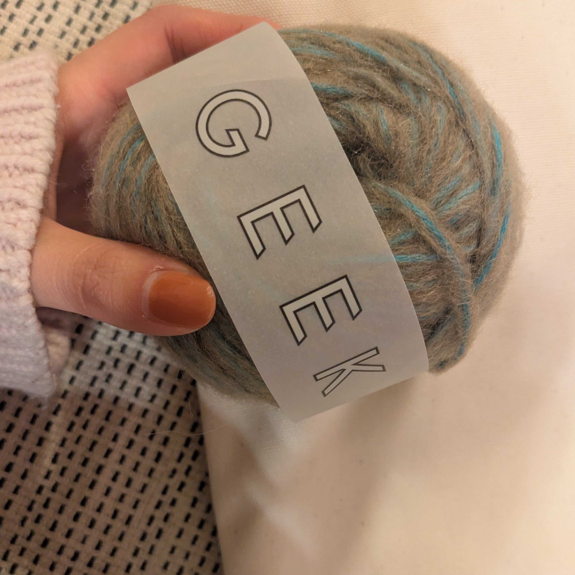 編み地の間からチラチラとネオンの色が見え隠れして、その名の通り「ギーク(マニアック)」なこだわりを感じる一玉。私は落ち着いたグレーベースに、鮮やかな水色がのぞくカラーを選びました。