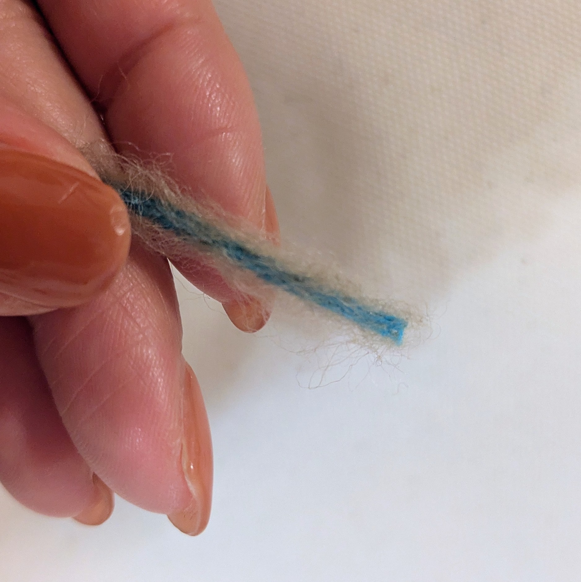 一見、落ち着いたウール混の糸に見えるのですが、中の芯糸にビビッドなネオンカラーが使われているんです。