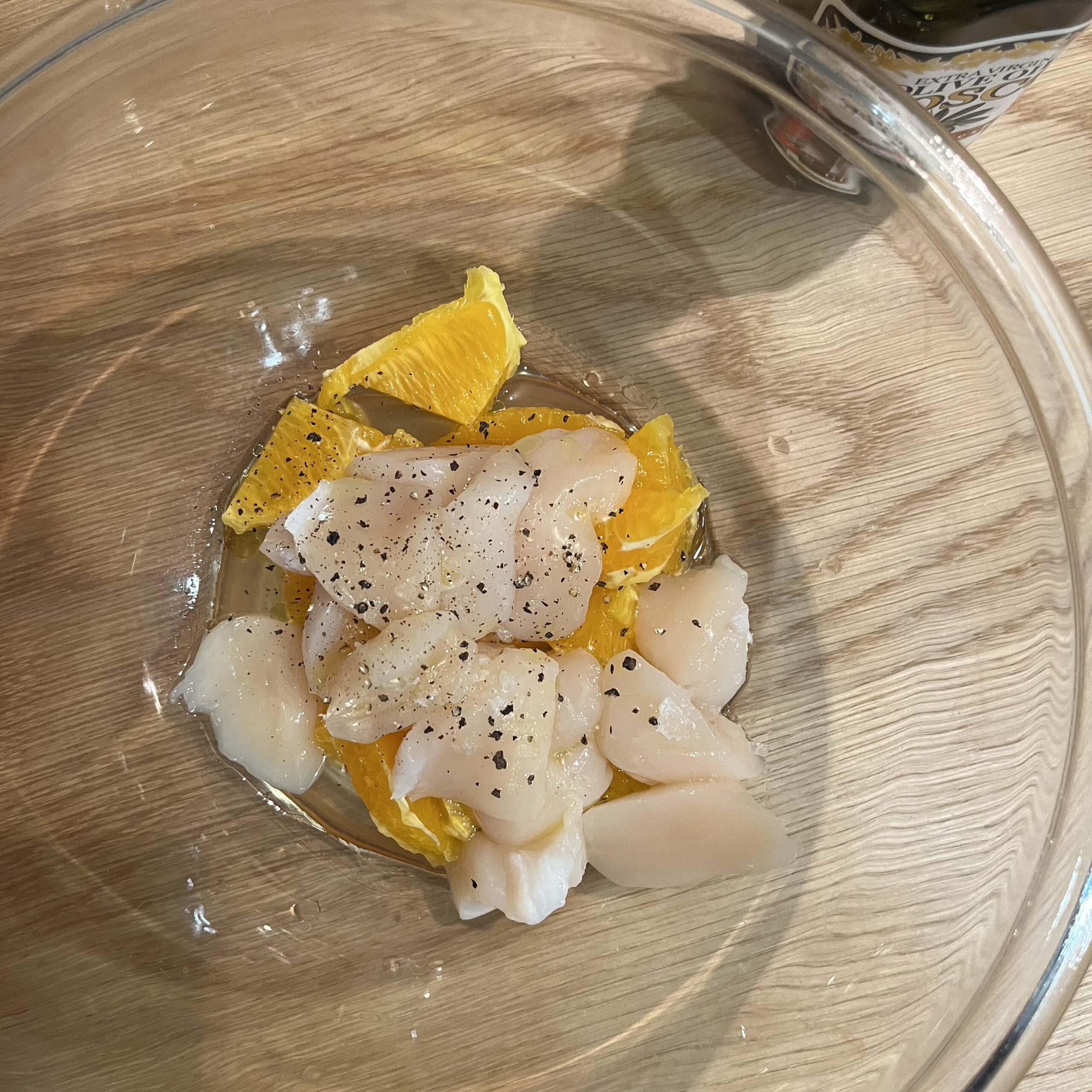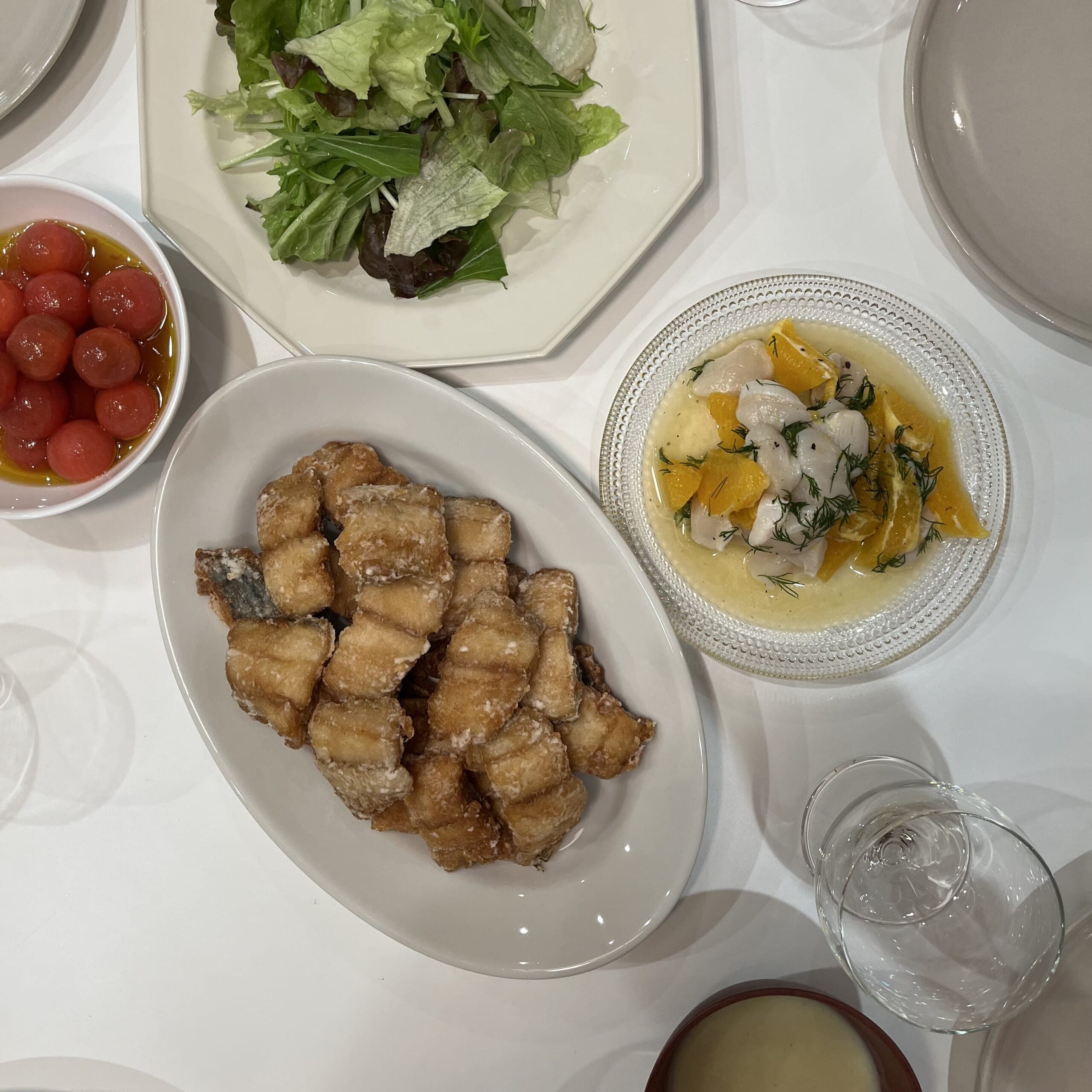 この日は鰆の竜田揚げと昨日のリベンジだ!とサツマイモのスープ、ミニトマトのマリネ、ホタテとフルーツのマリネ、ローストビーフを作りました。