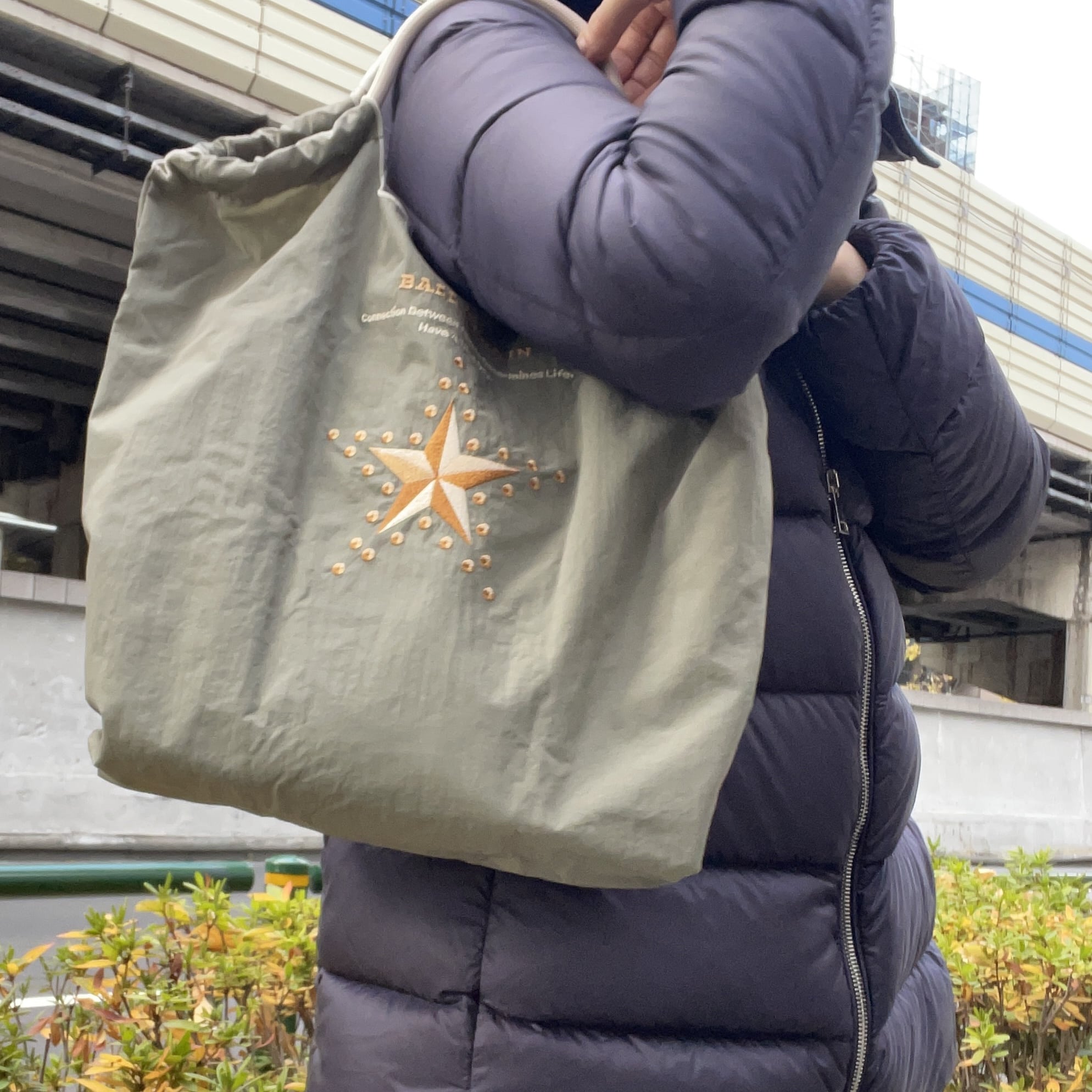 黒のエコバックは複数持っているので、ベーシックだけど、ちょっとおしゃれな優しいカーキの様な落ち着いたカラーが気に入りました。
