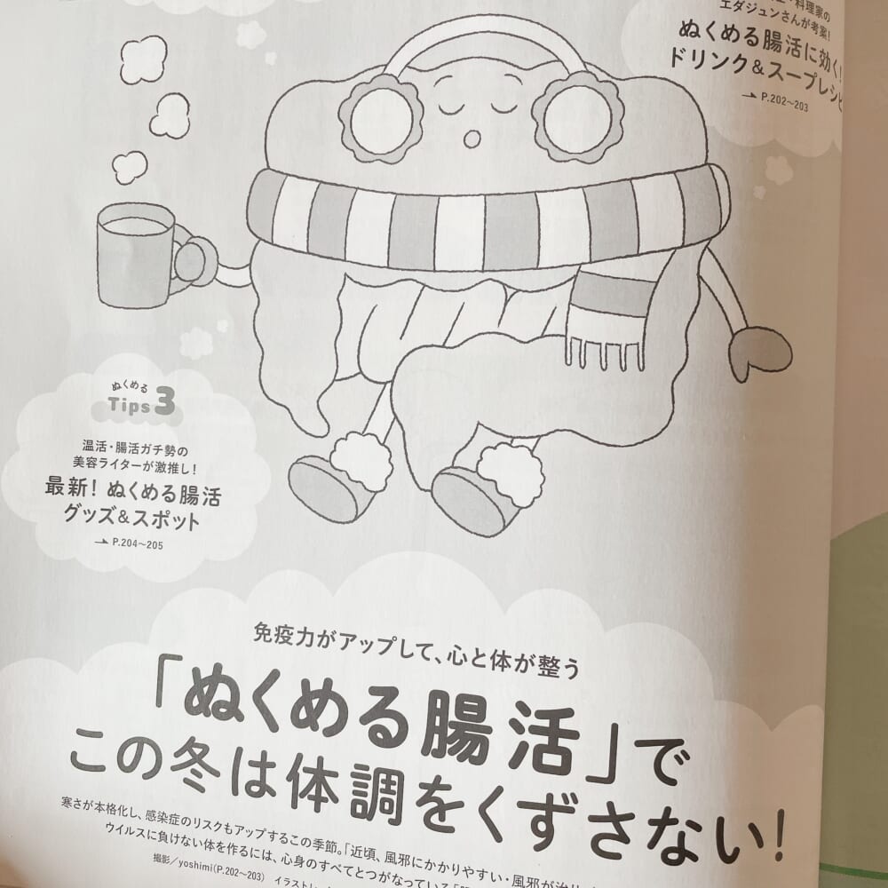 「ぬくめる温活」特集では他にも、外側・内側から温めるポイントや、美味しそうなドリンク&スープレシピも掲載されています。
