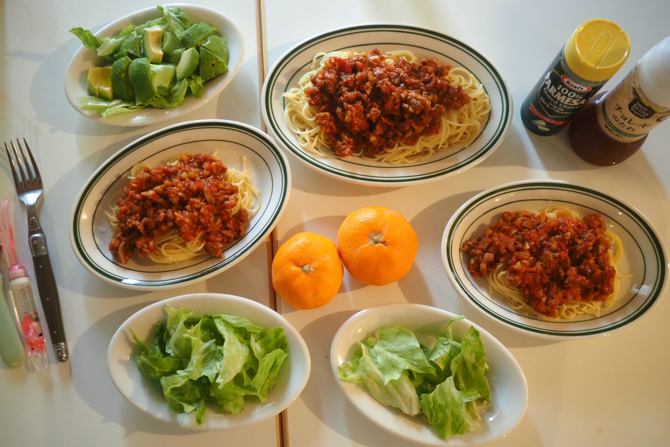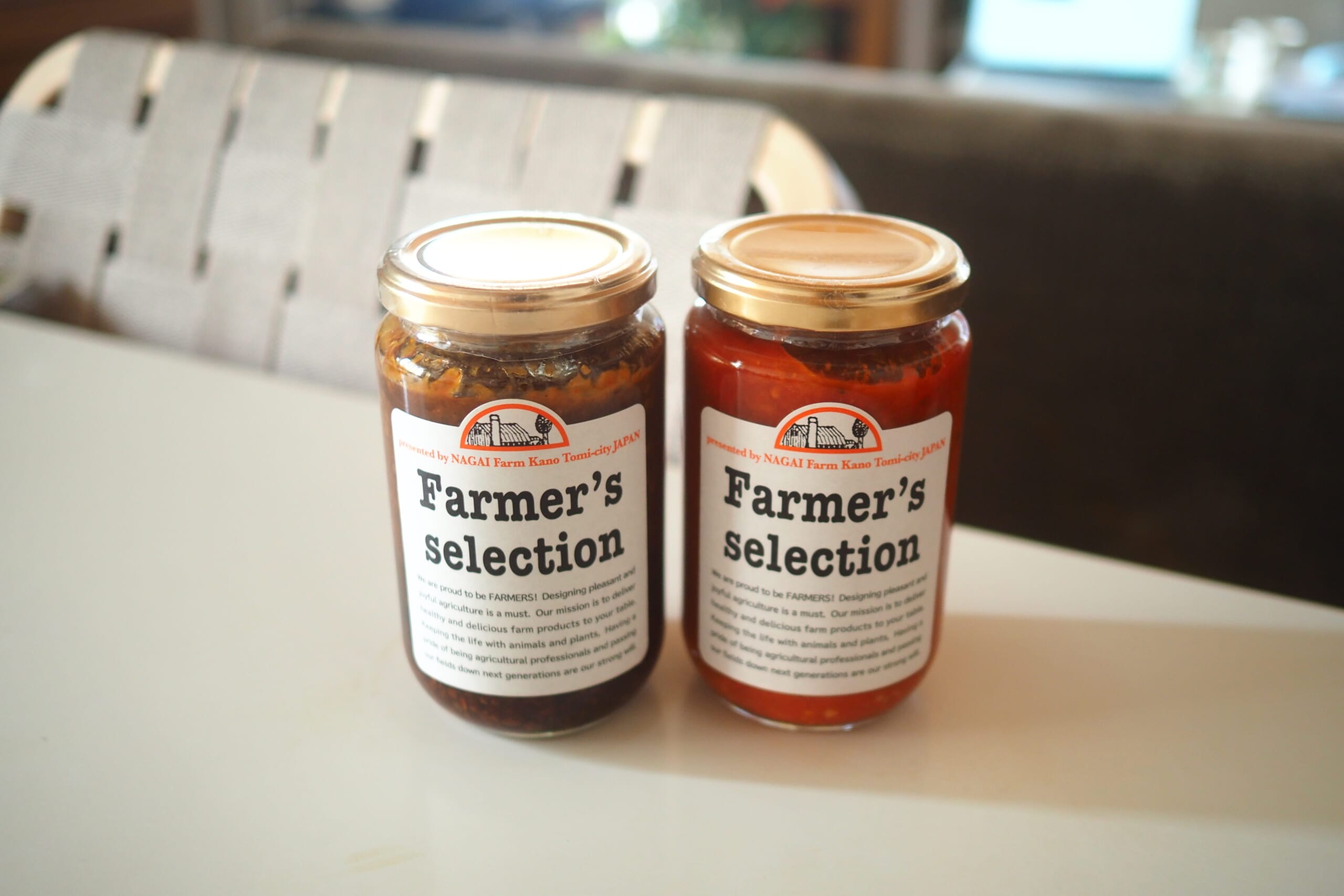 トマトソースは最近初めて購入してみたもの(使ったのは右の方)。長野県にある永井農場からお取り寄せしました。こちらのトマトソースに中農ソースや砂糖を足して、子ども好みのミートソースに。とてもおいしくできた!