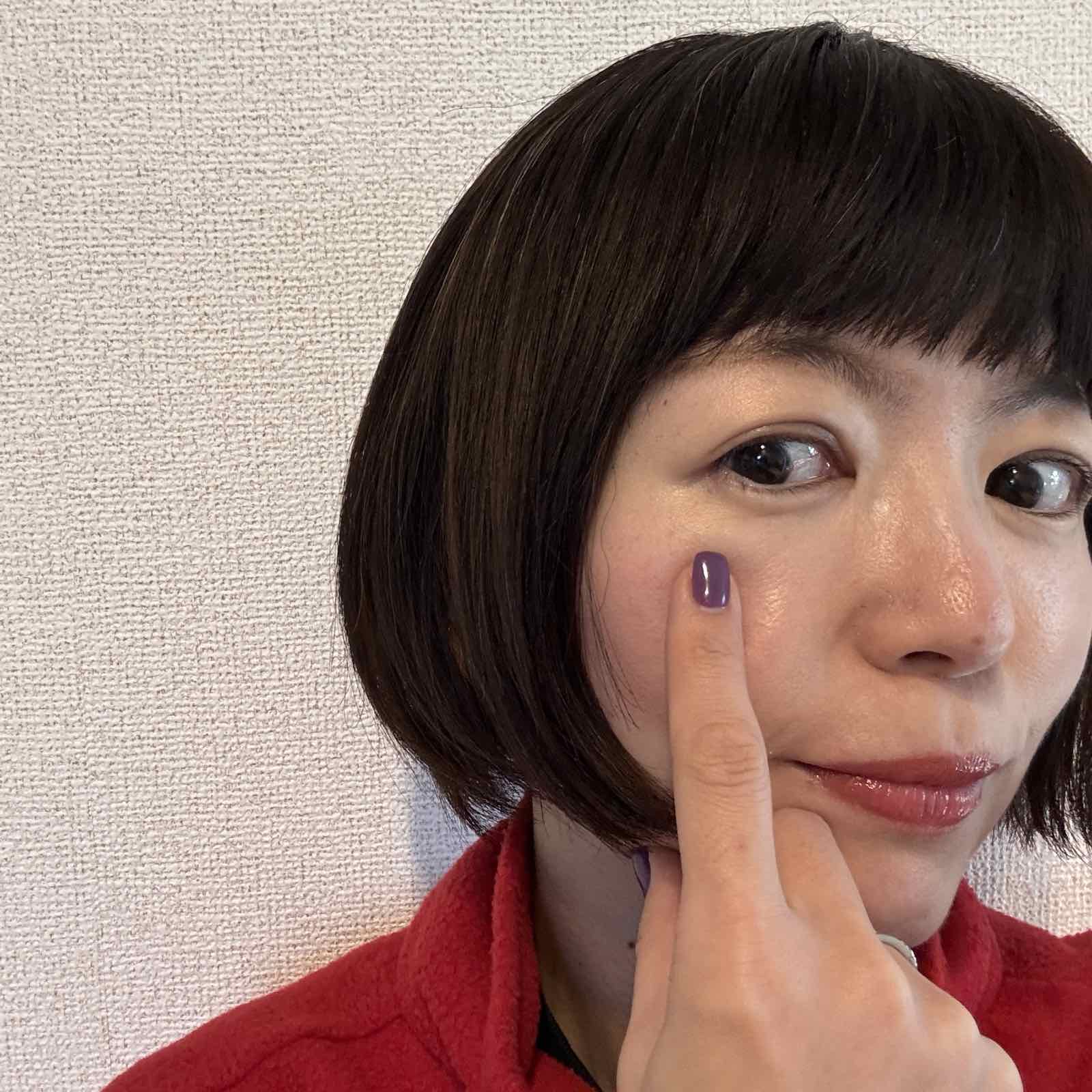 ②ファンデーション塗った後も、綺麗にうすーくキラン!何か「ハイライト」的なひと手間なしで終了できてます。むしろとても自然なツヤ。