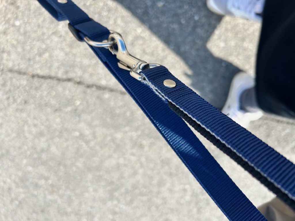 新しく購入したものはネイビーのリードですがシンプルなので服を着せた時にも合わせやすい!♪