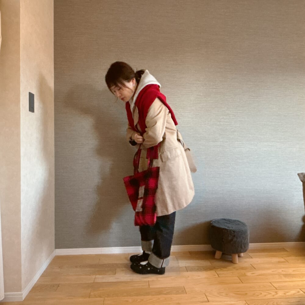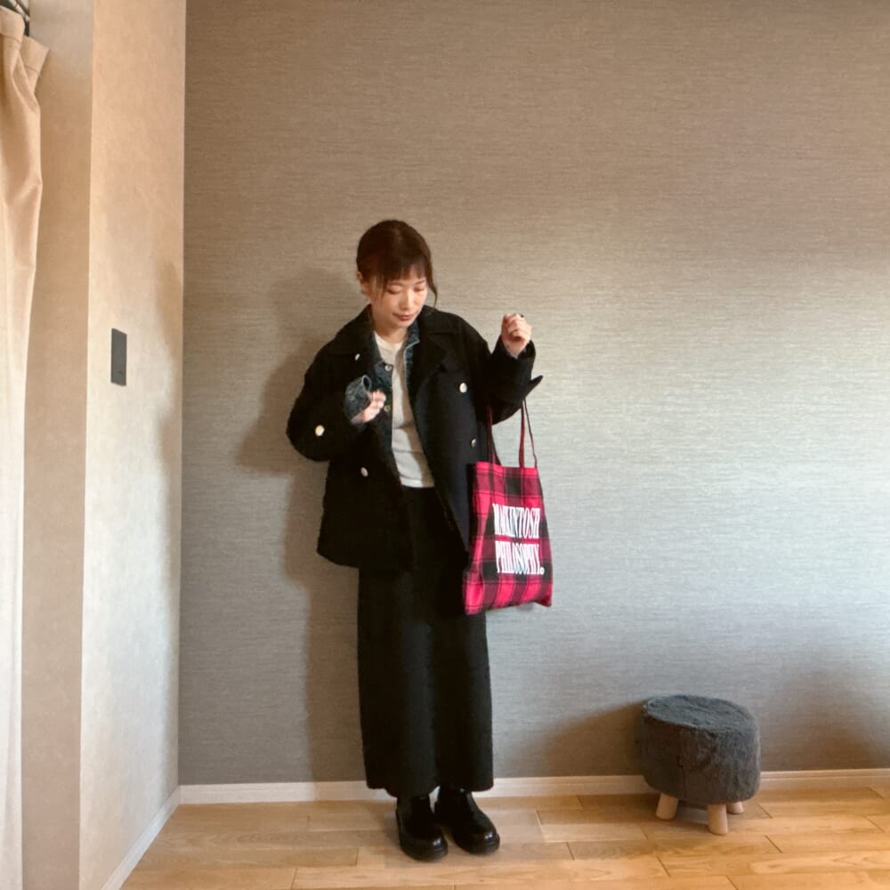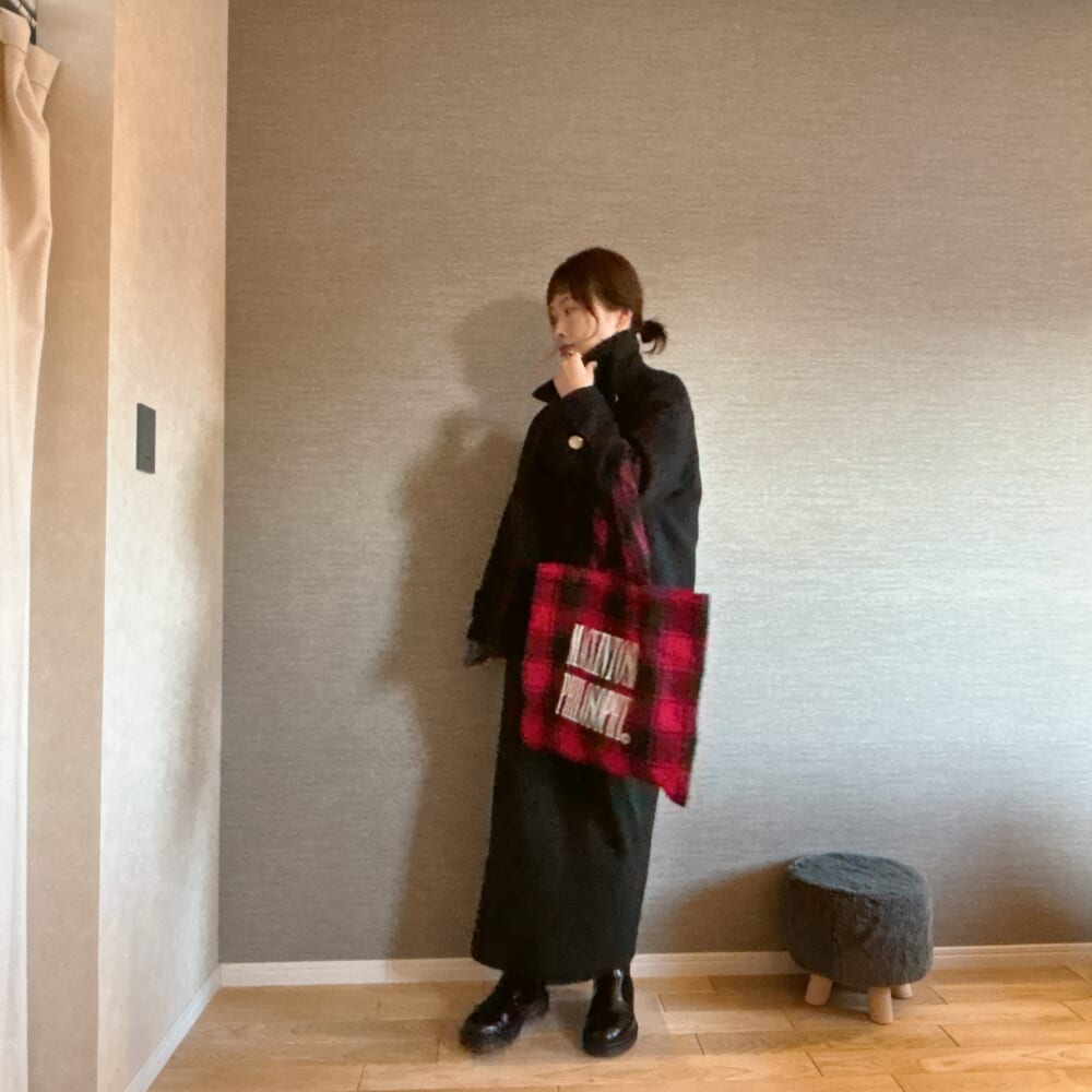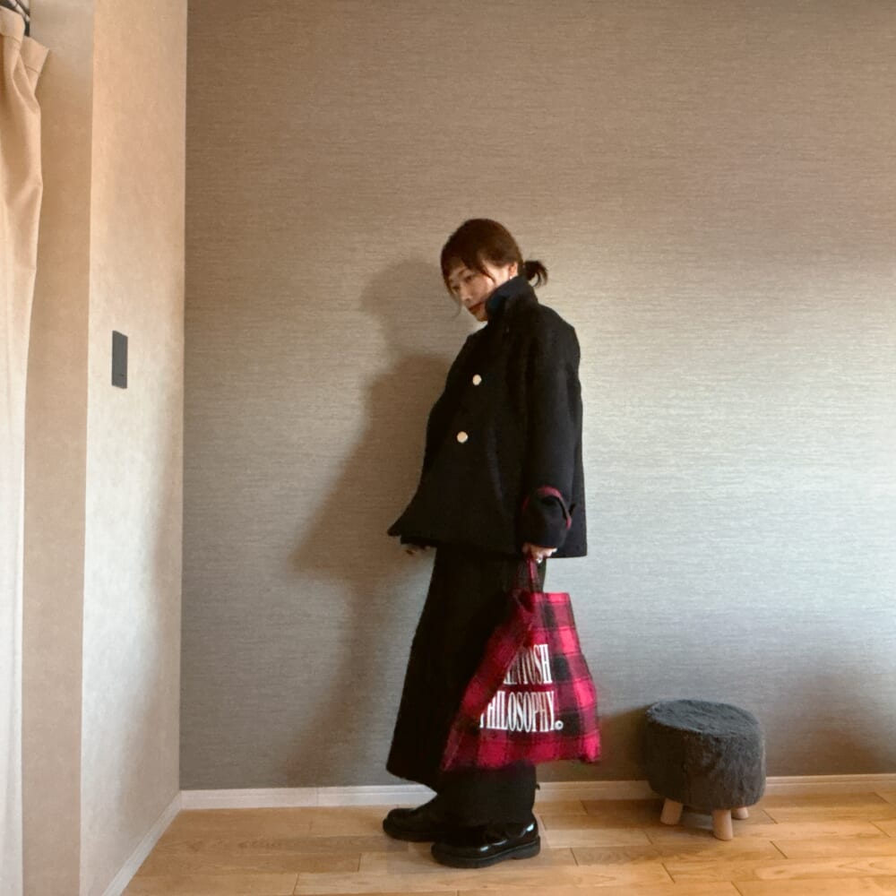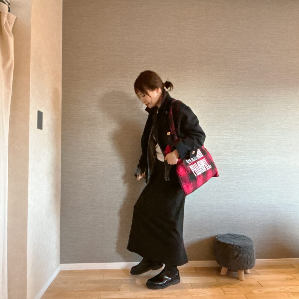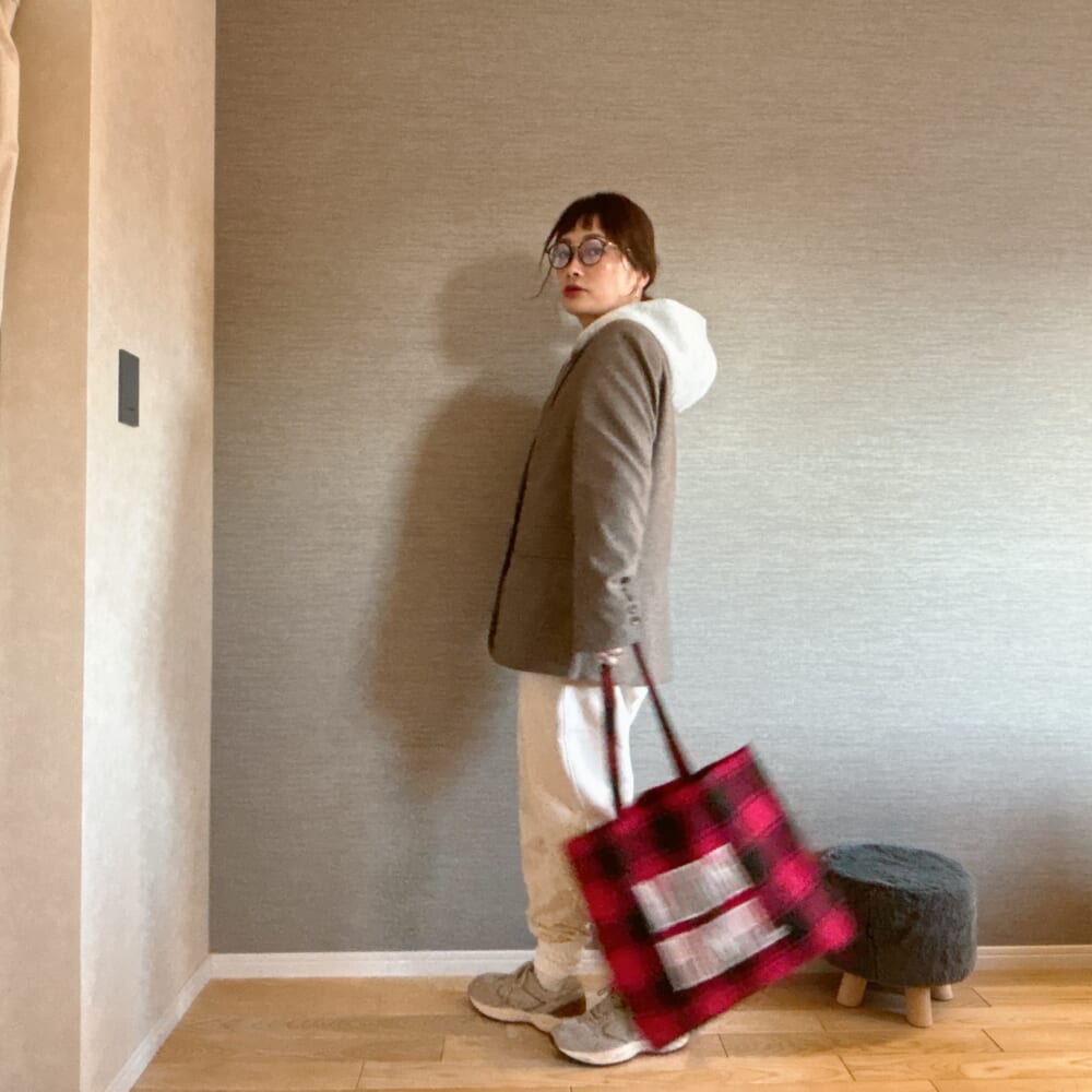赤のチェック柄って実は合わせやすい。特に冬って地味色コーデになりがちなので。さて、どう合わせようかなーって思って。今年あっという間に冬がやってきた北海道。購入したのに全然着られなかった無印良品のジャケットでコーデしてみた。