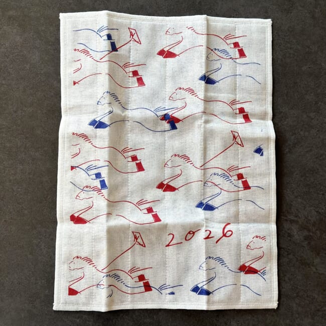 そんなドゥ・セーで見つけたのは、手描きタッチが可愛い馬デザインの布巾です。