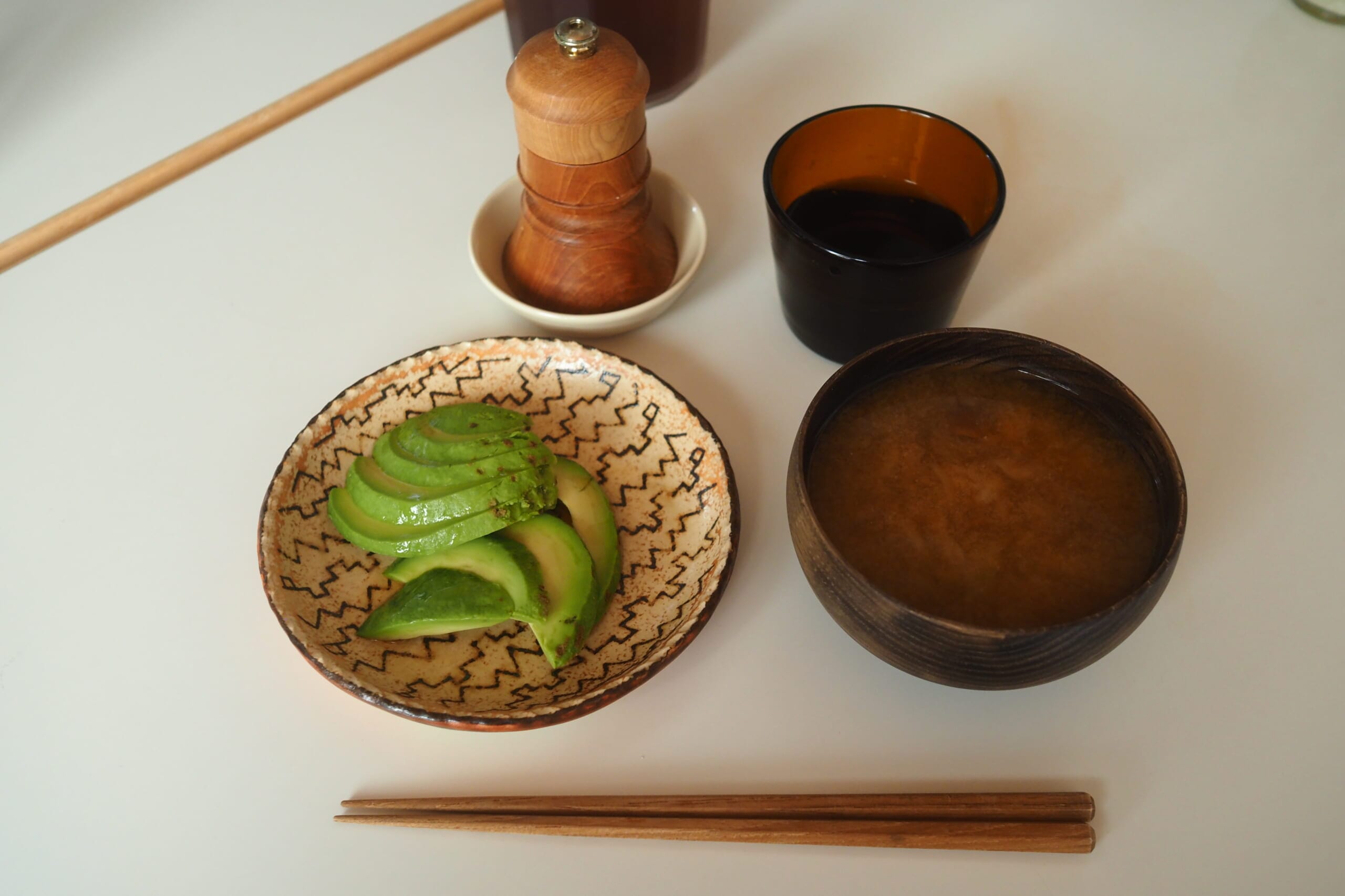 私は味噌汁とアボカド。アボカドには塩とごま油をたらしていただきました。