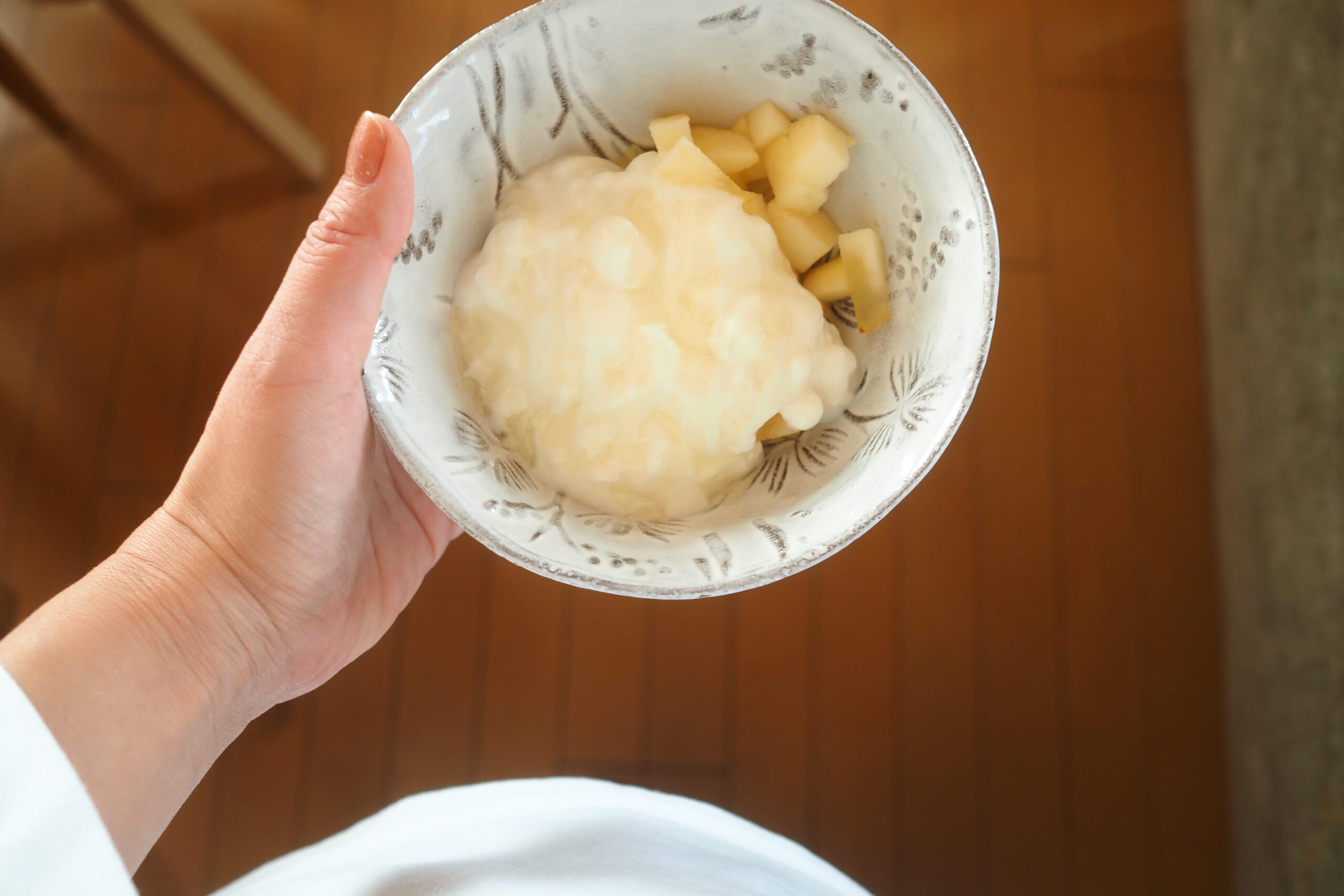 刻んだりんごにヨーグルトとはちみつをかけたもの。