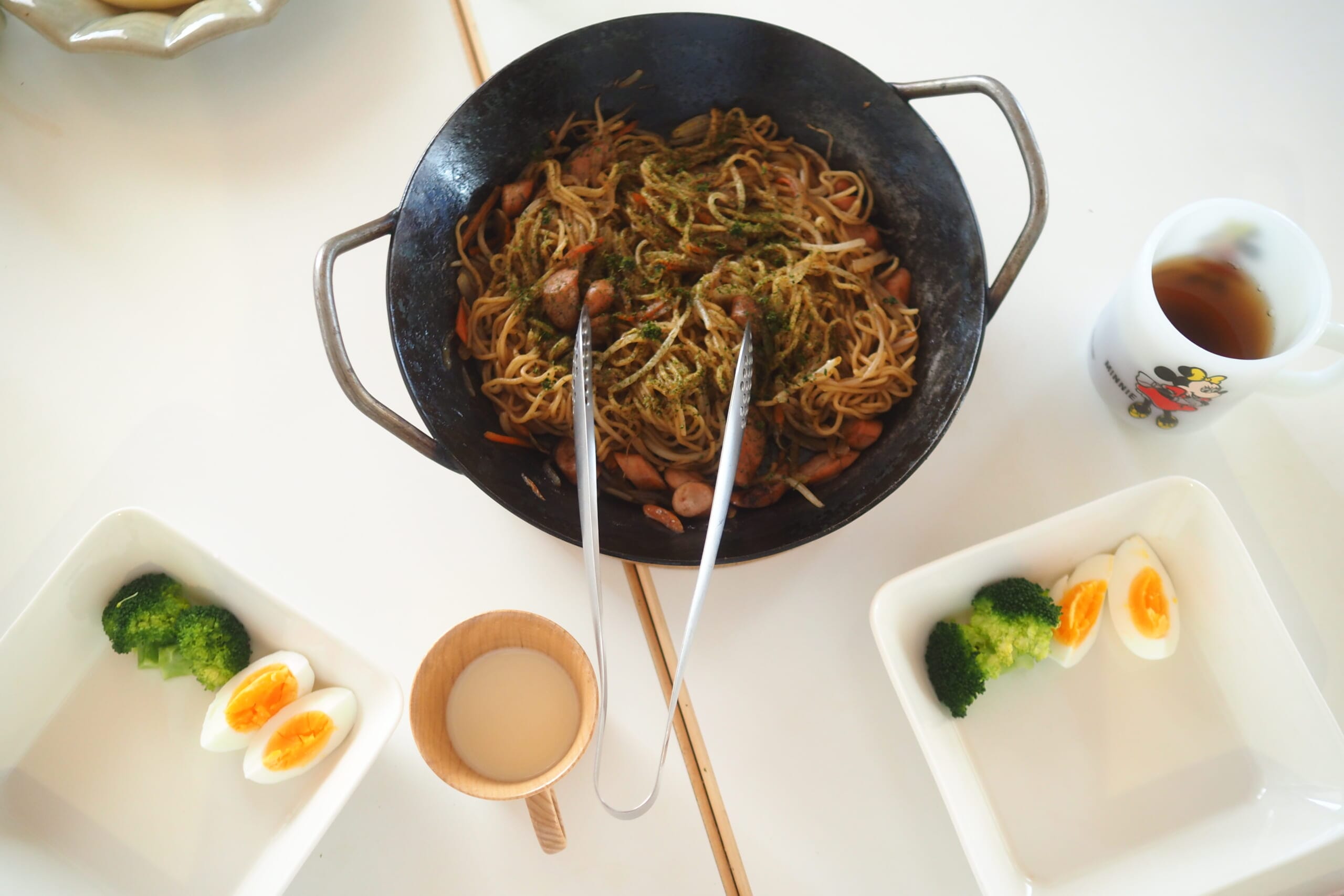 子どもたちそこまでお腹が減っていなかったので、焼きそば1人前に野菜をたっぷり入れたものをみんなで分けて食べました。