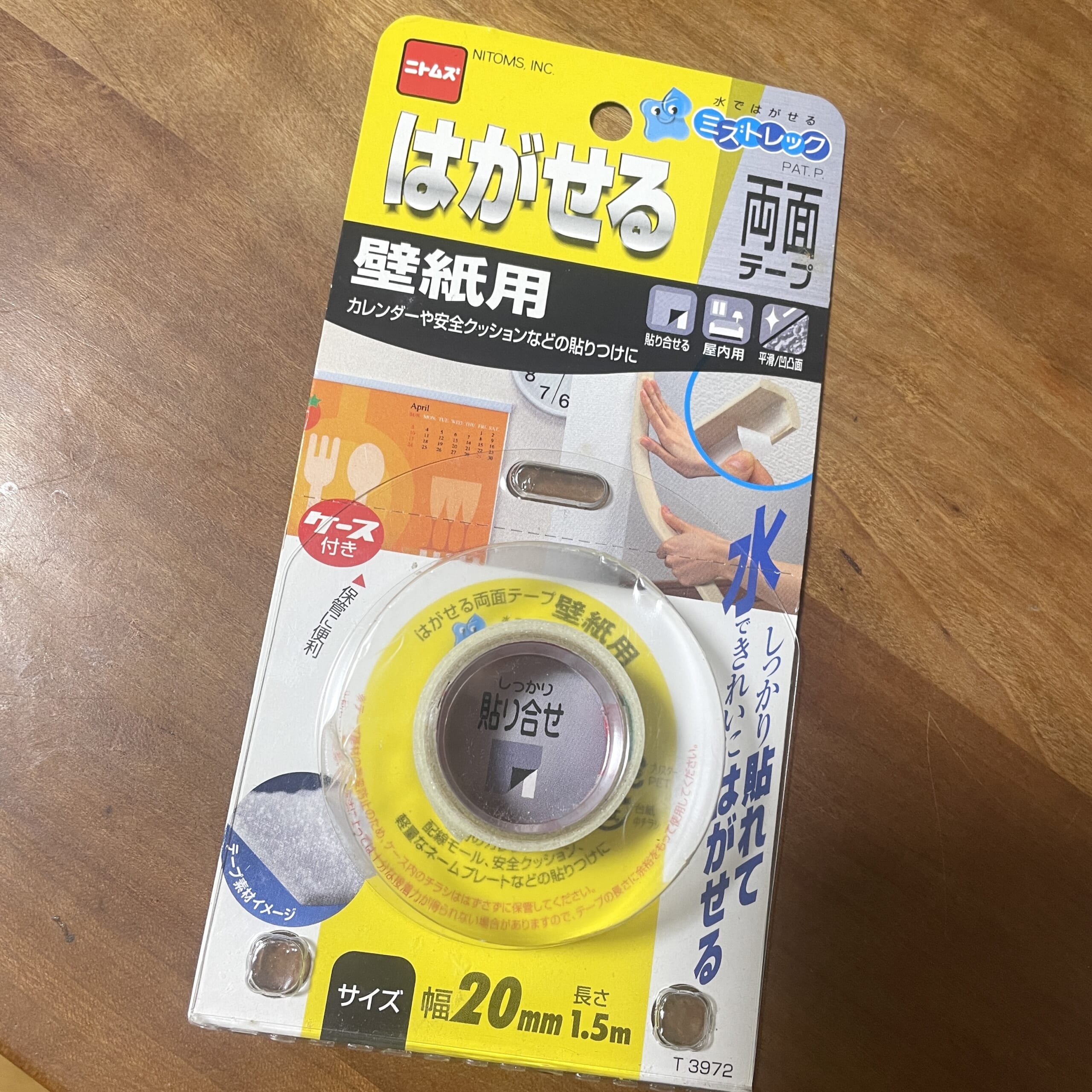 昔からこちらの両面テープを使っています。剝がすときはティッシュペーパーに水をふくませで濡らすとはがせるので壁紙が痛みません。