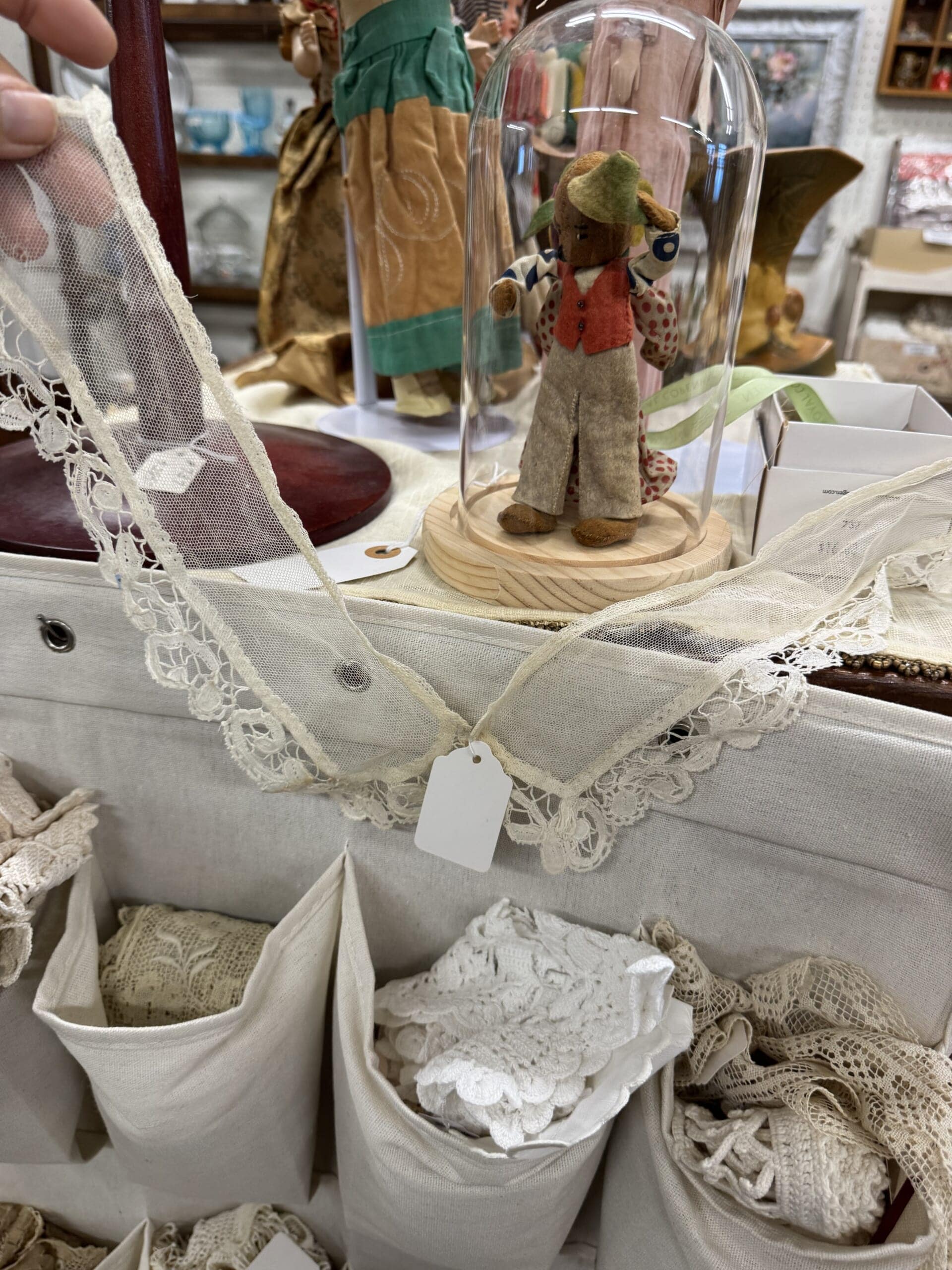 置いてあるものは出店者によって様々でプクが毎度トラップされるのがお手製レースのつけ襟や