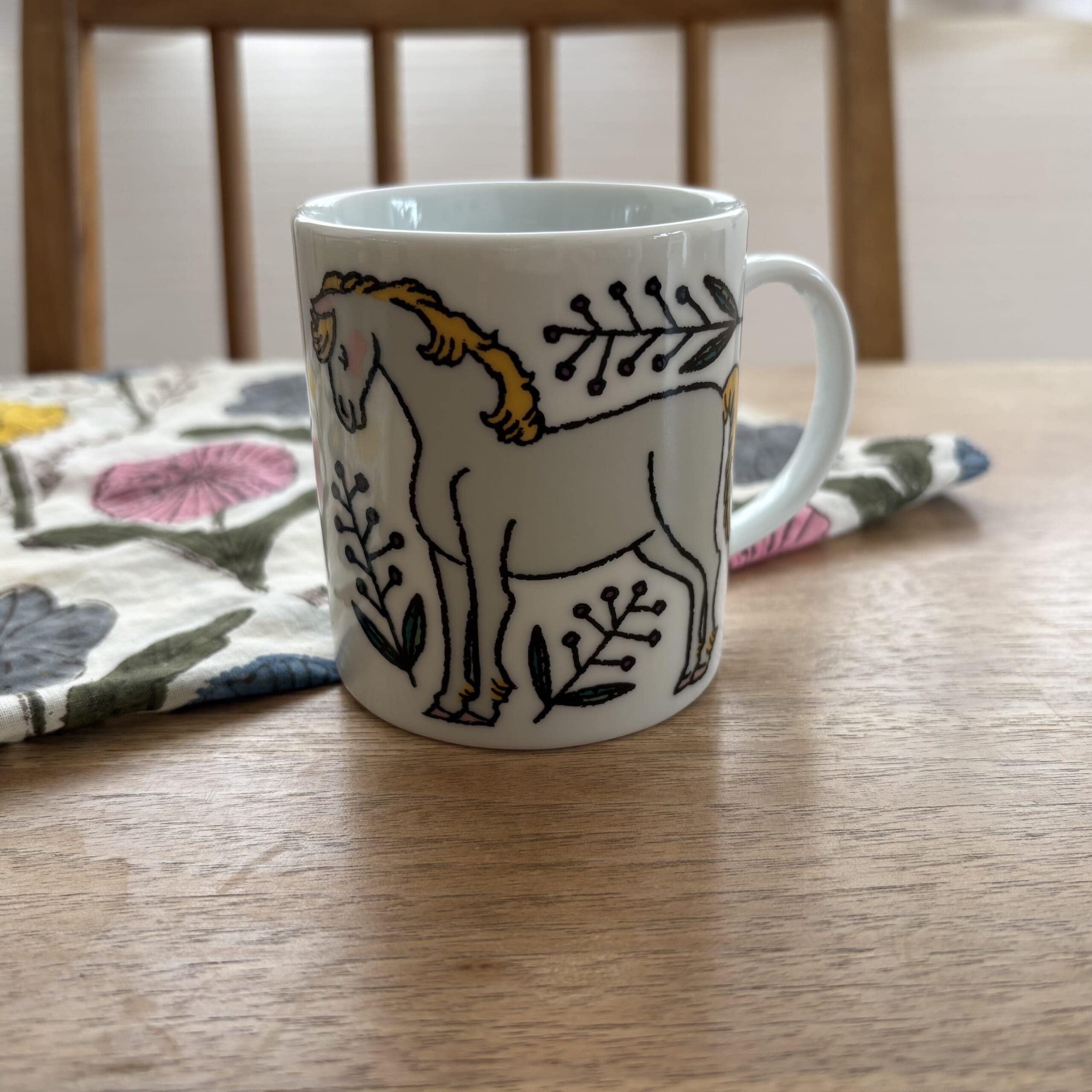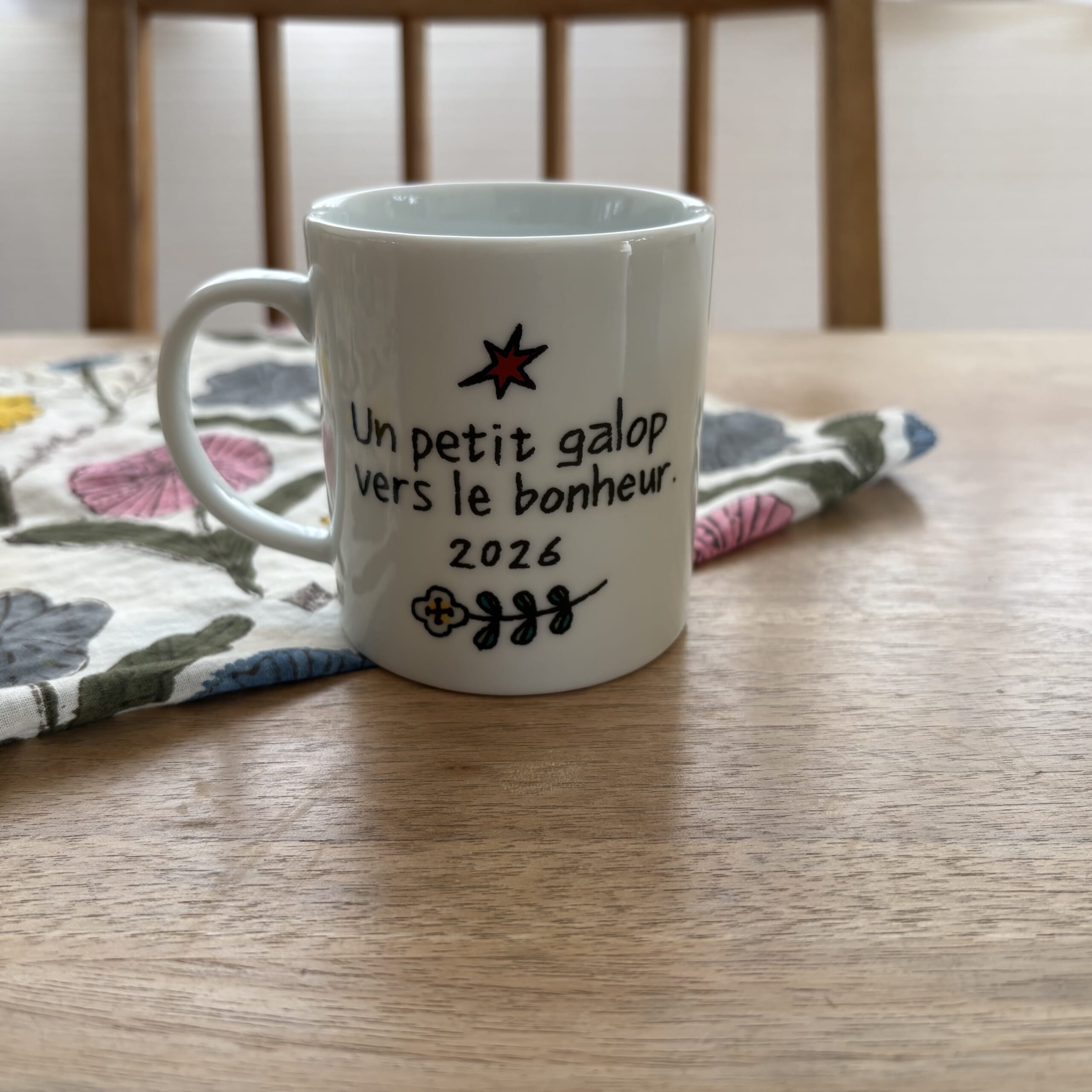 あと一つ何かないかな??と思っていた時、以前より度々ブログに登場している「dieci」さんのSNSで知ったマグカップ。鹿児島睦さんによるプロダクトで、干支(午)デザインのマグカップを購入しました。