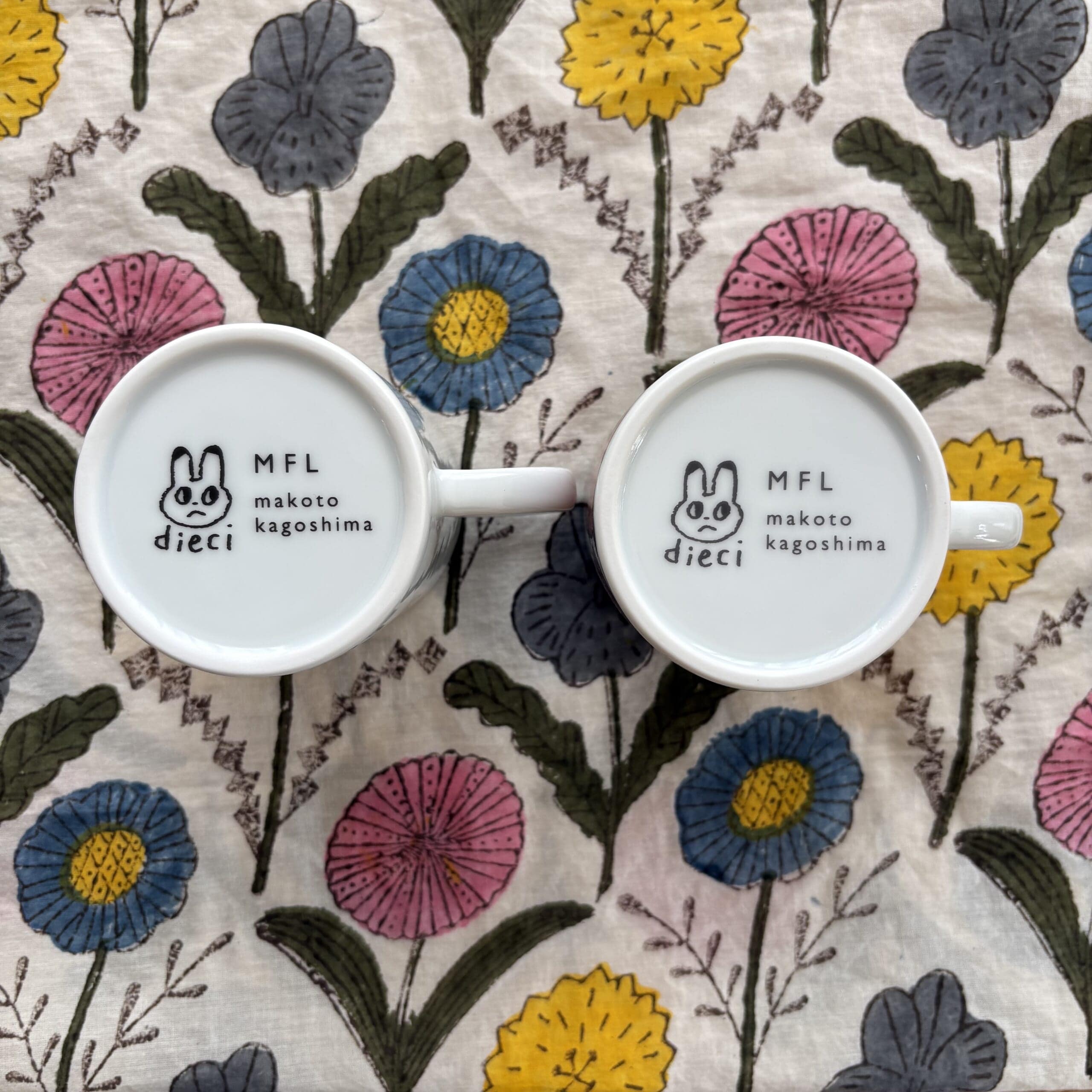「dieci」さん24周年記念のために書き下ろされたデザインのウサギのマグカップです。
