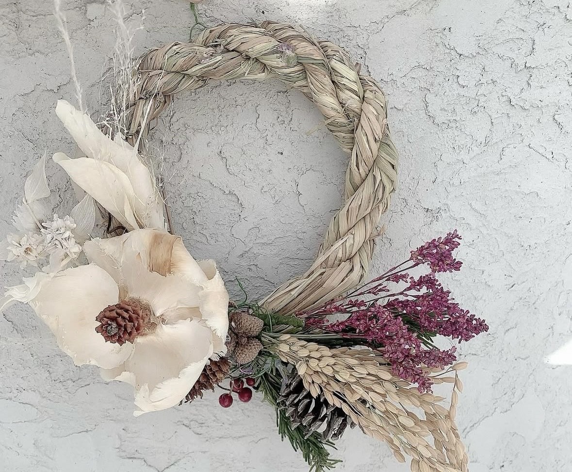 稲わらをいただいたので、3本編み、最後にぐるぐると巻き付けて、丸くしていきました。