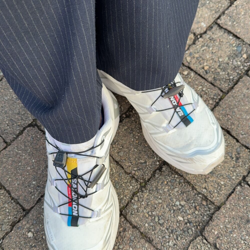購入してヘビロテ中のSALOMONスニーカー。ヘビロテのため、汚れが目立っていてお恥ずかしいのですが、履き心地も良く、ボリュームあるデザインなのでシンプルなファッションのアクセントにもなっておすすめです。毎日の子どもの保育園自転車送迎時に履いているのですが、ゴアテックスなので雨の日にも強く、機能性も抜群。