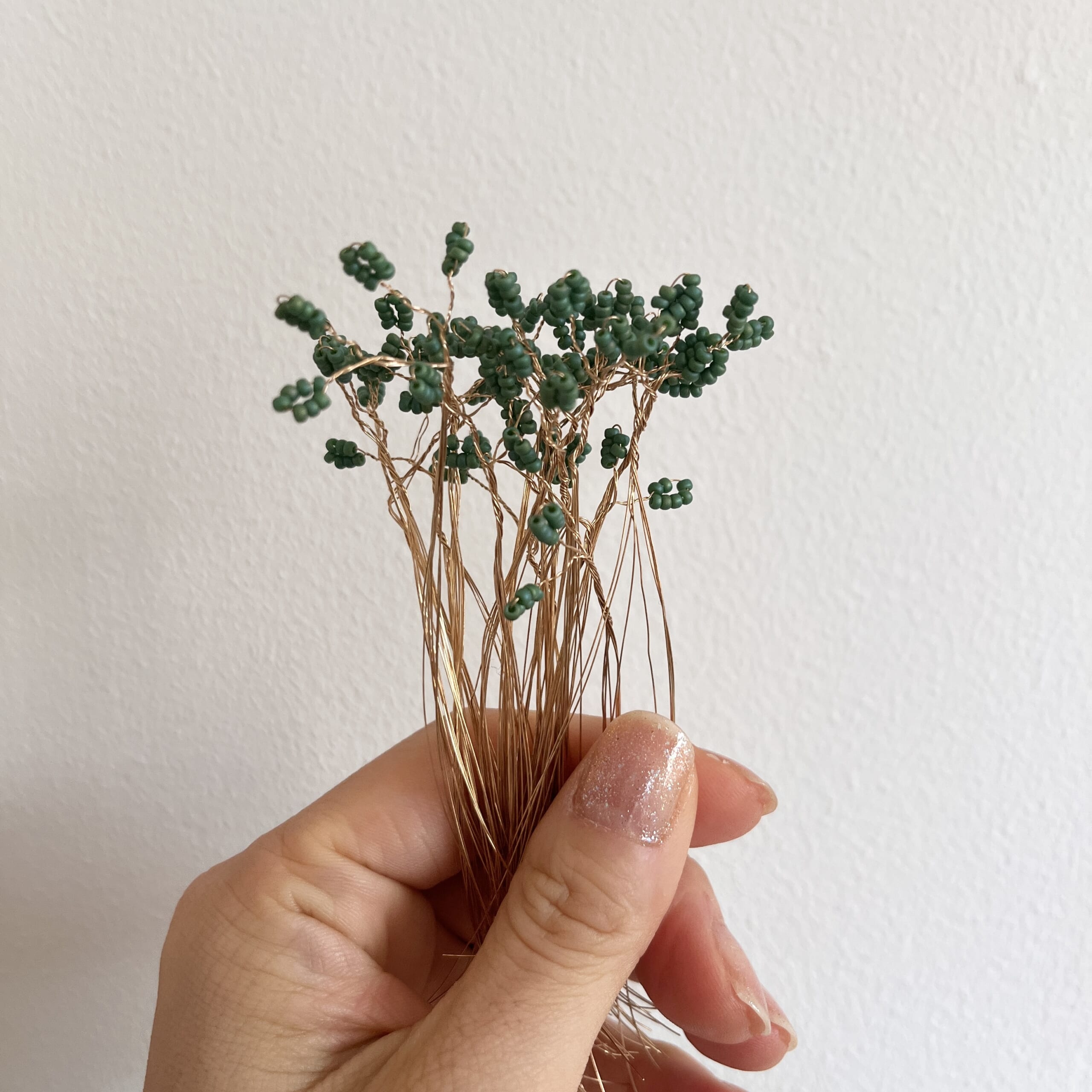ワイヤーに通したビーズが松の葉になっています。