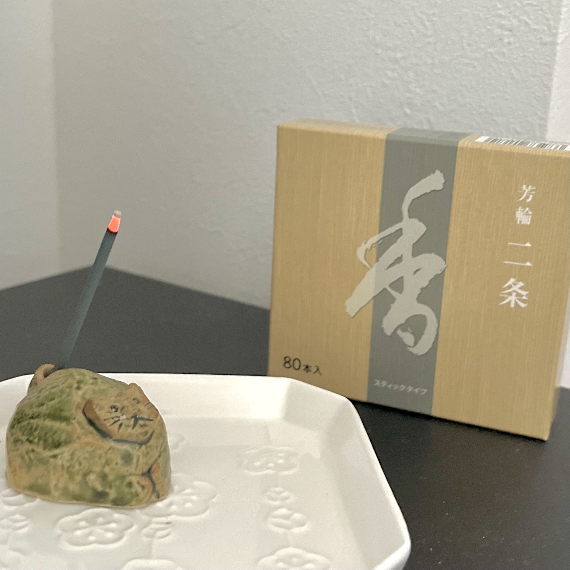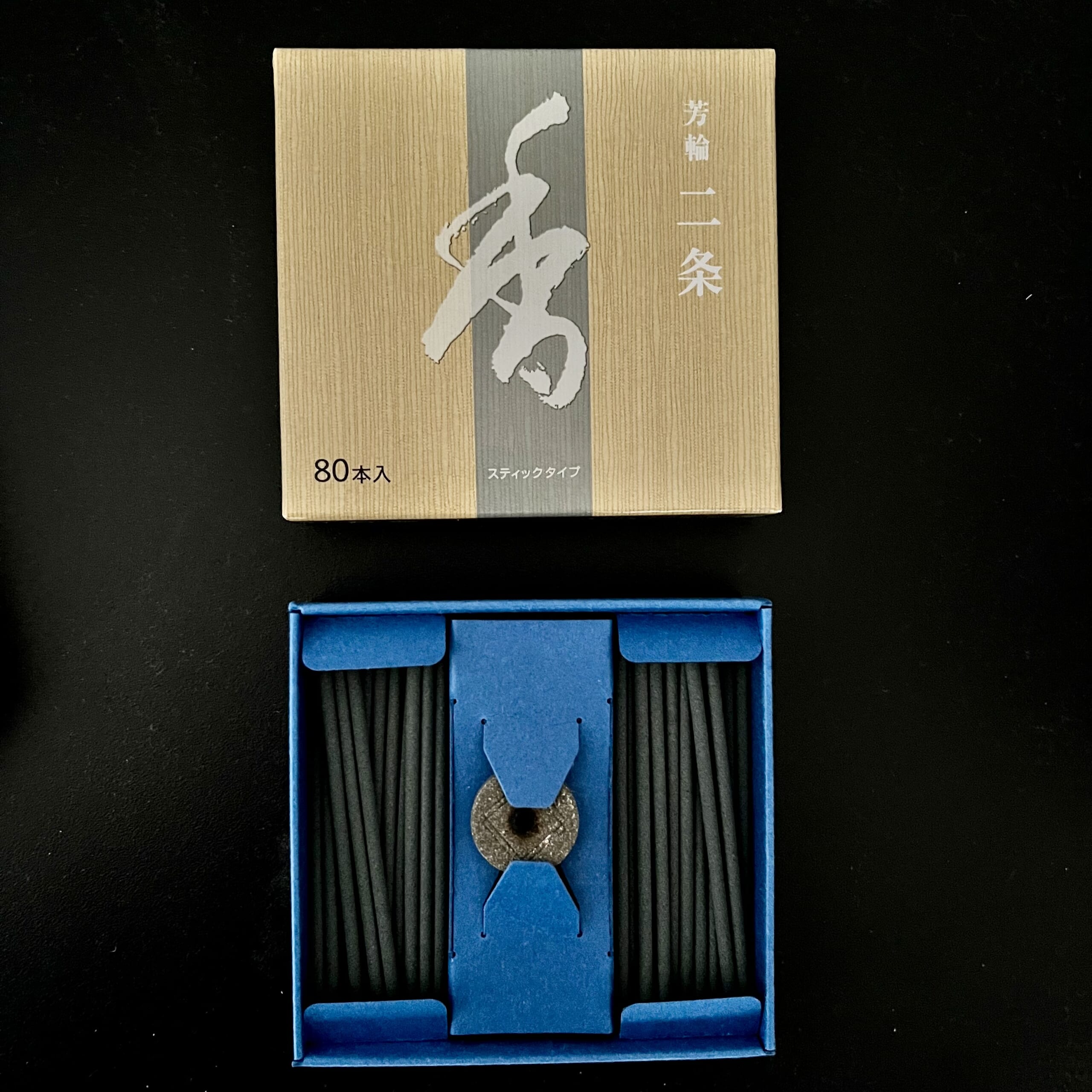 松栄堂のお香といえば「堀川」が人気ですが、その堀川よりもすっきり爽やかさがある気がします。ベースが白檀の香りなのは堀川と共通していますが、堀川がまろやかな甘さを感じるような香りなのに対して、二条は凛としつつも優しさがあるような香りです。