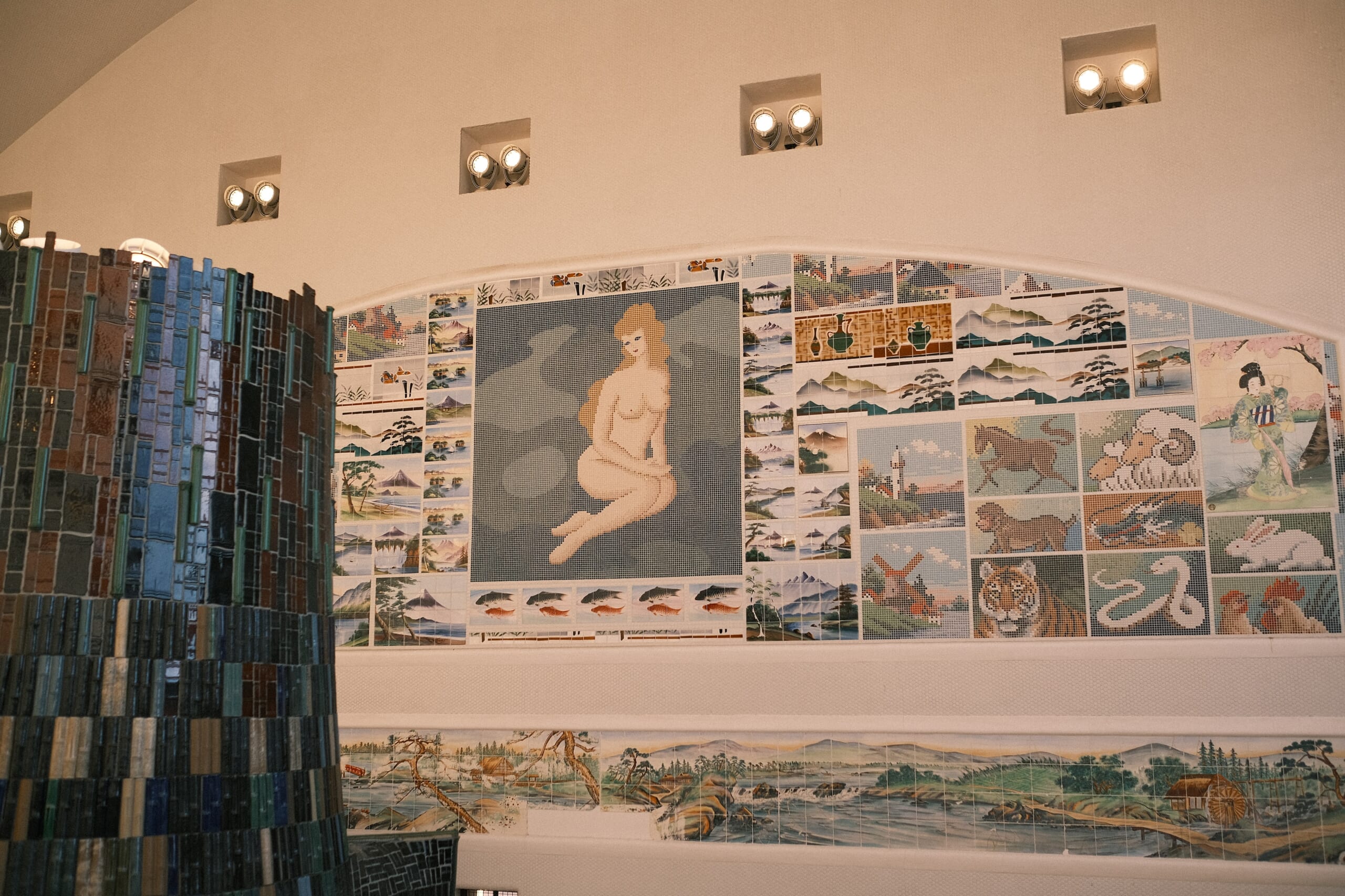壁にはタイルが埋め込まれていて、期待が高まります。
