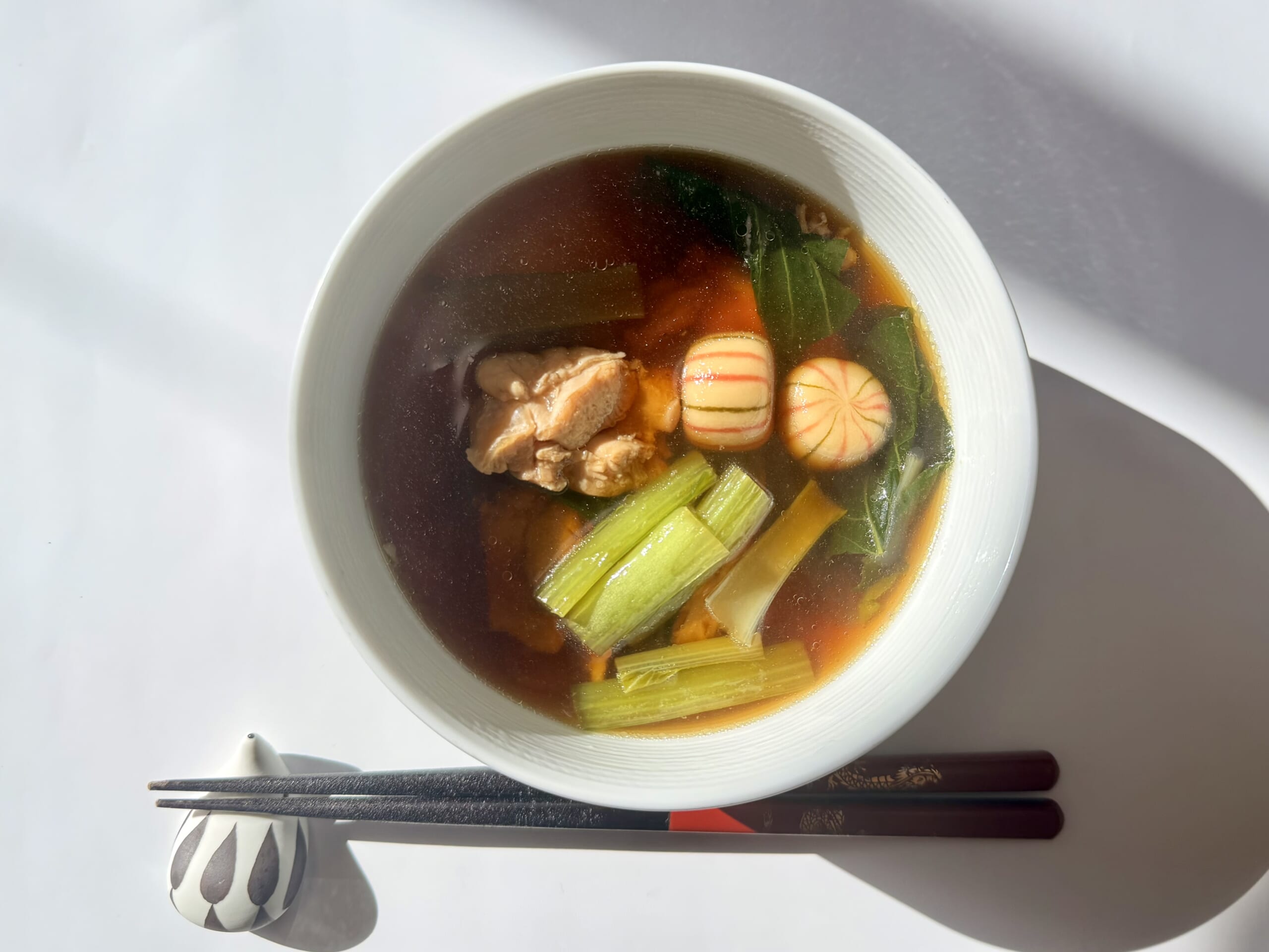 我が家のお雑煮は、鶏肉と小松菜。