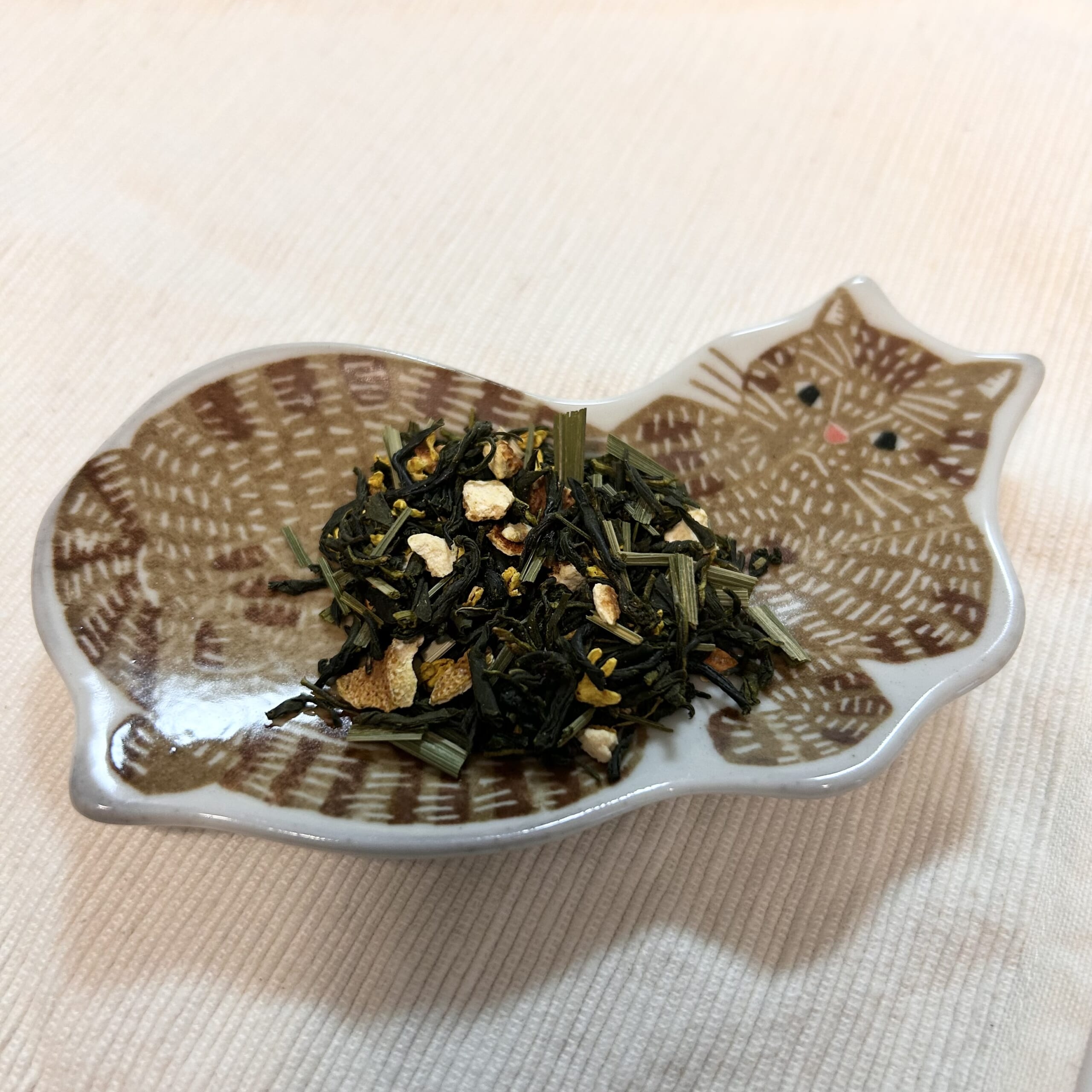 とのこと。おお、なんか幸先の良い感じもしてきた…。そして柑橘とキンモクセイがみずみずしく香る緑茶らしいのです!なにそれ、絶対美味しいやつ…🤤