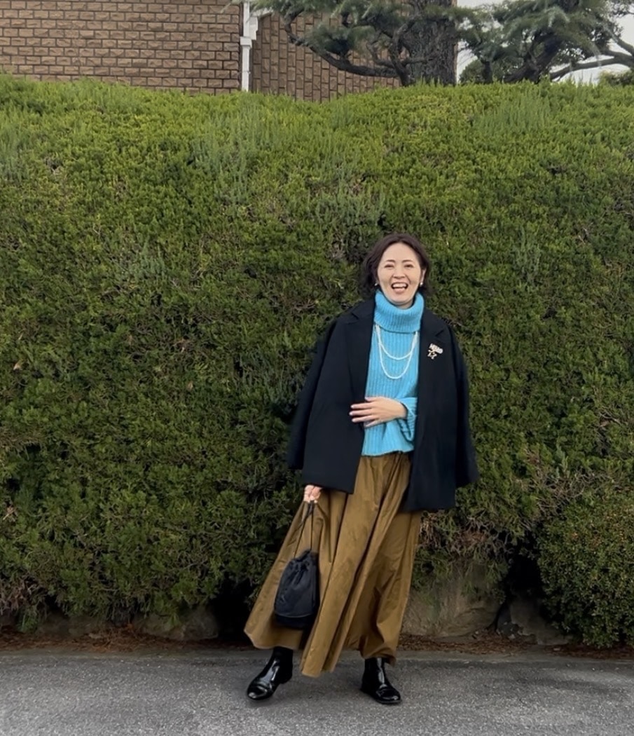 両家へご挨拶の日。いつもはつい地味になりがちな私ですが、新年くらいは華やかにしたくて、ブルーのニットを選びました。