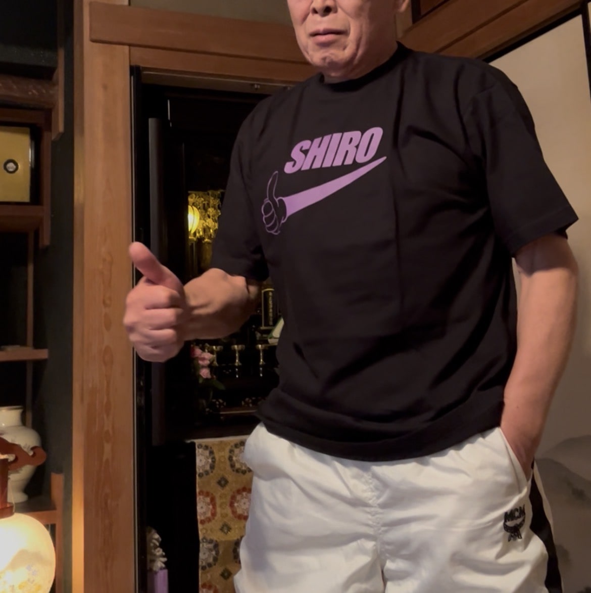 ずっと渡しそびれていた、父の古希のお祝いTシャツをみんな揃ったこのタイミングで贈呈。